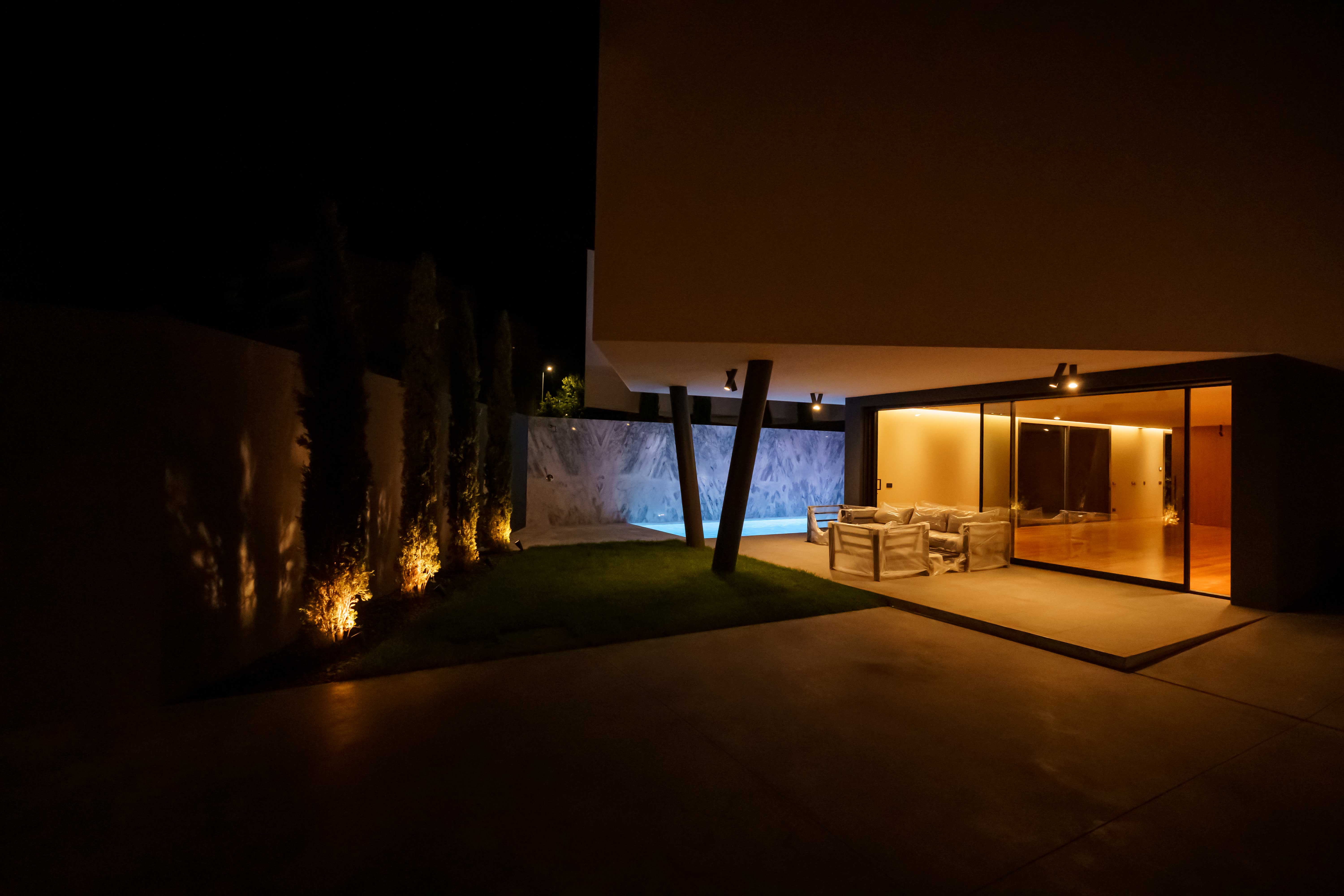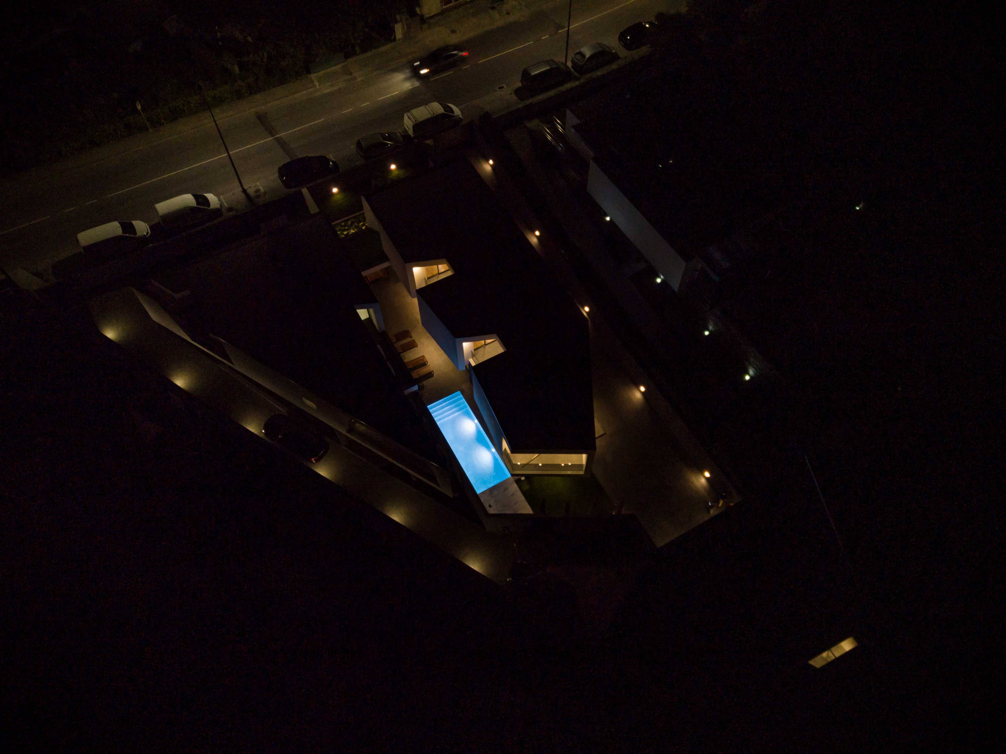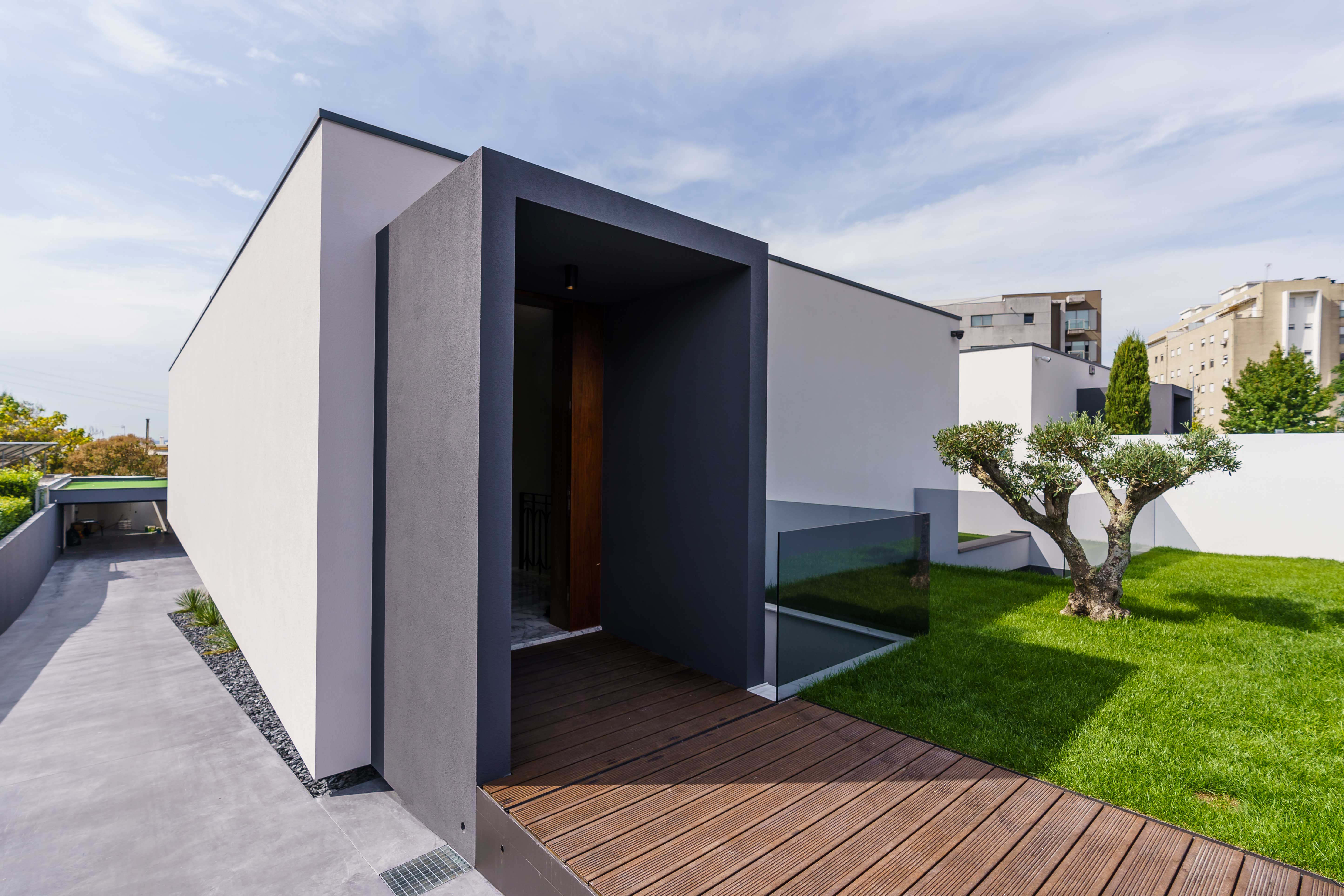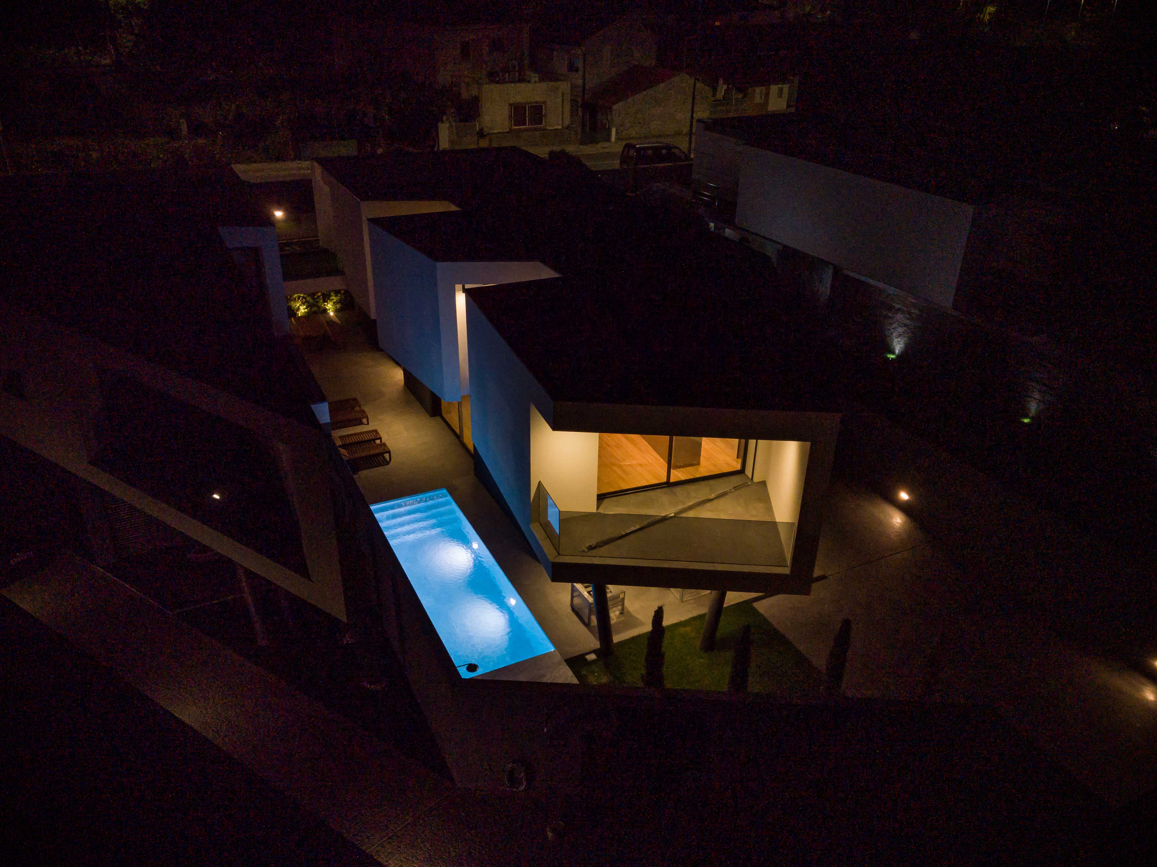 Tendo como objetivo principal a construção de uma habitação simples, funcional e confortável, procurou-se formas e processos simples, valorização da luz natural, acabamentos práticos e simples. O funcionamento é bastante intuitivo e versátil, apresenta uma distribuição por usos, os compartimentos são agrupados tendo em conta o seu uso, a relação com o exterior no que respeita aos compartimentos de descanso e lazer é bastante valorizada, abrindo-se de forma premeditada, convidando as pessoas a sair e aproveitar a continuidade do espaço como complemento do interior, sempre com privacidade. O acesso automóvel e pedonal são efetuados diretamente a partir da rua existente, sendo as entradas para o automóvel nas laterais, seguidas de rampas a ligar às garagens no fundo do terreno. O piso inferior é dedicado às dependências de lazer e serviços e o piso superior para as dependências reservadas ao descanso.