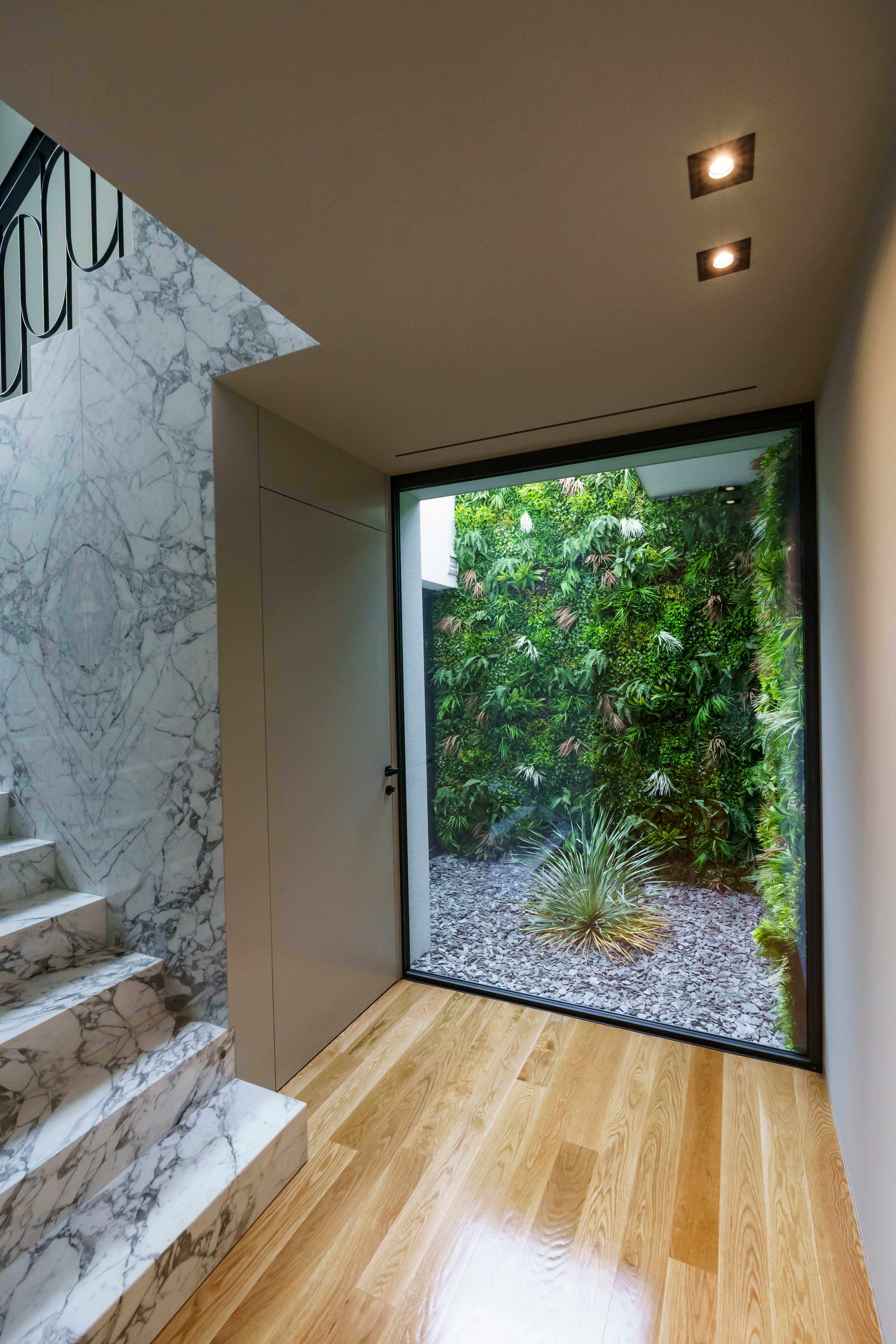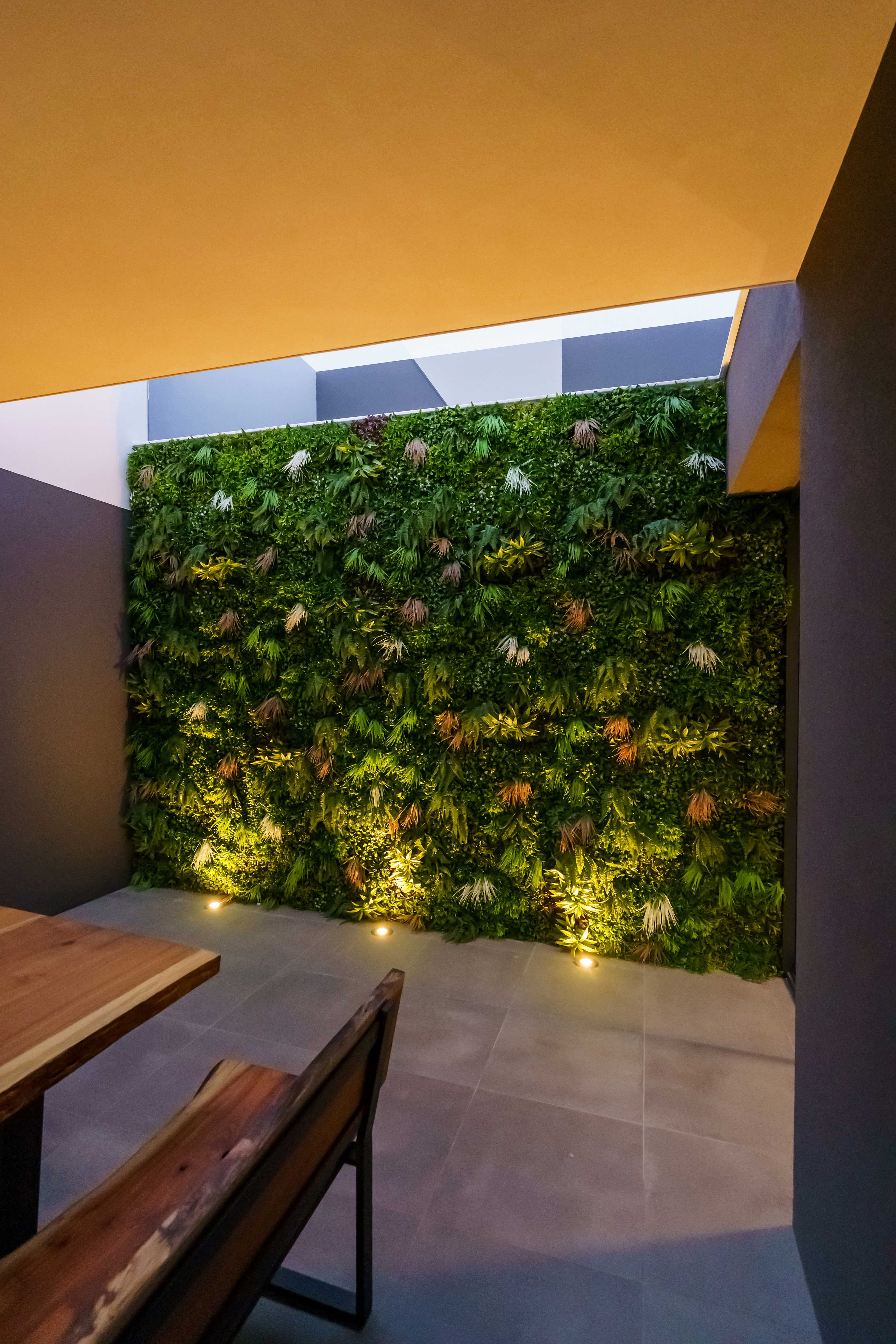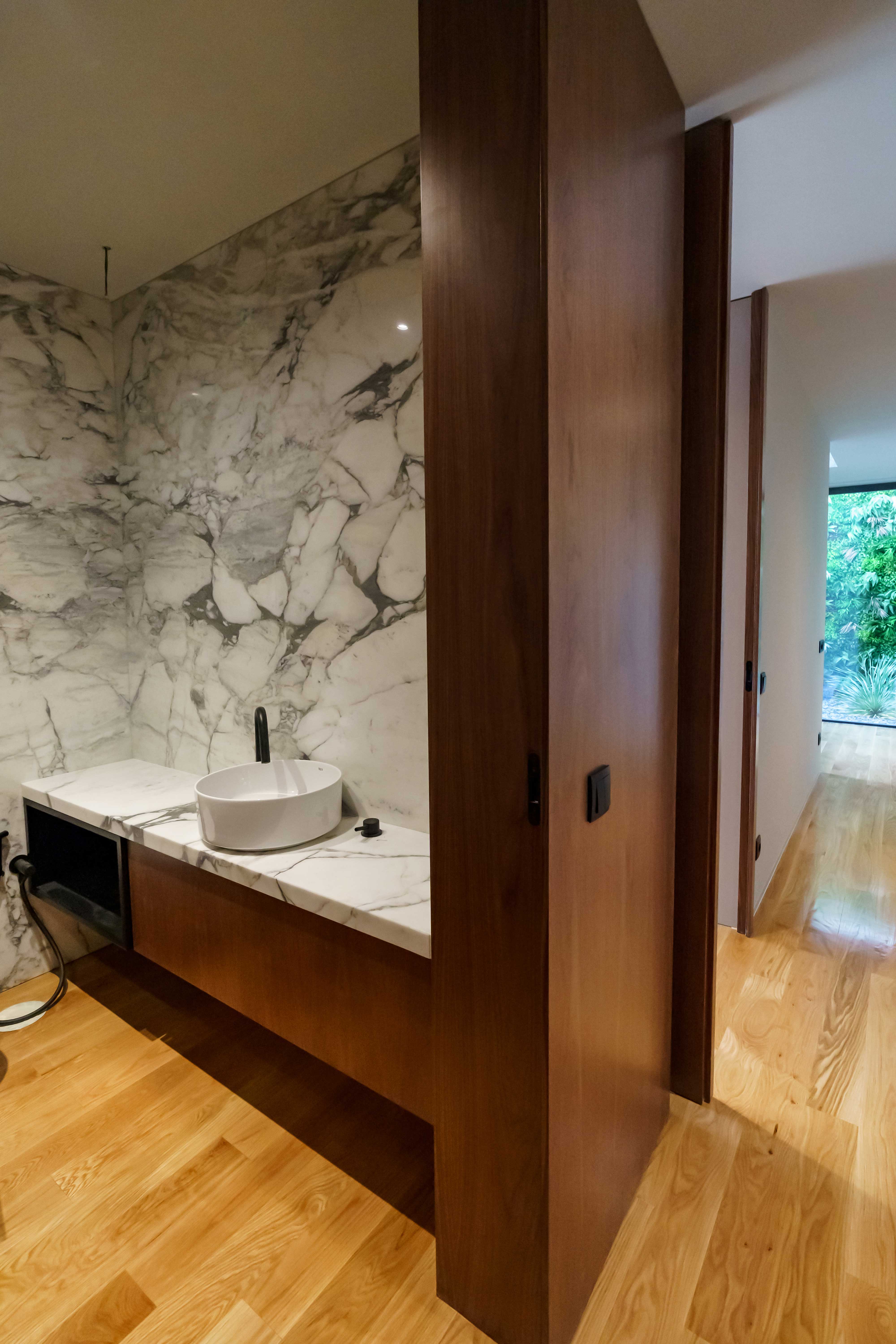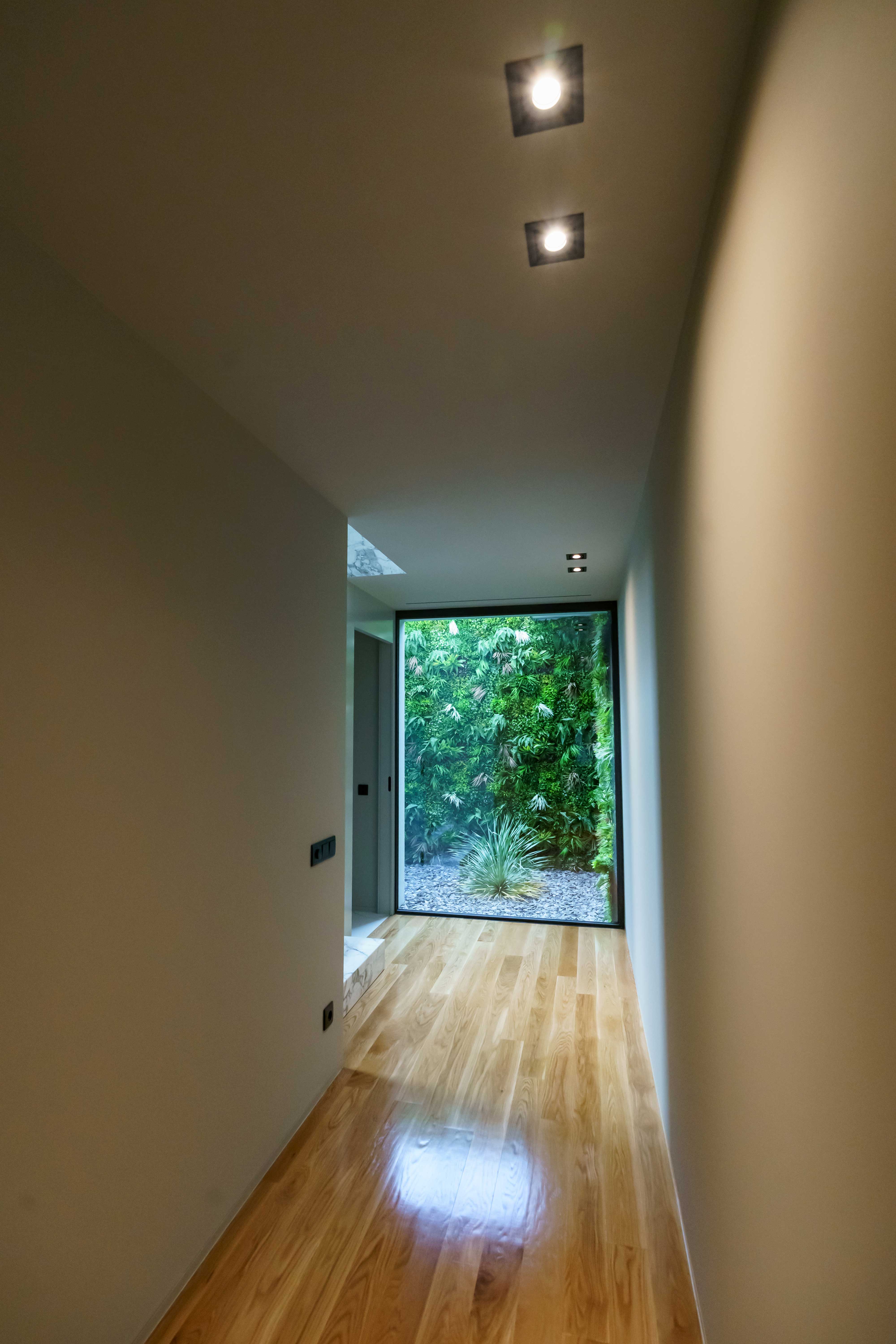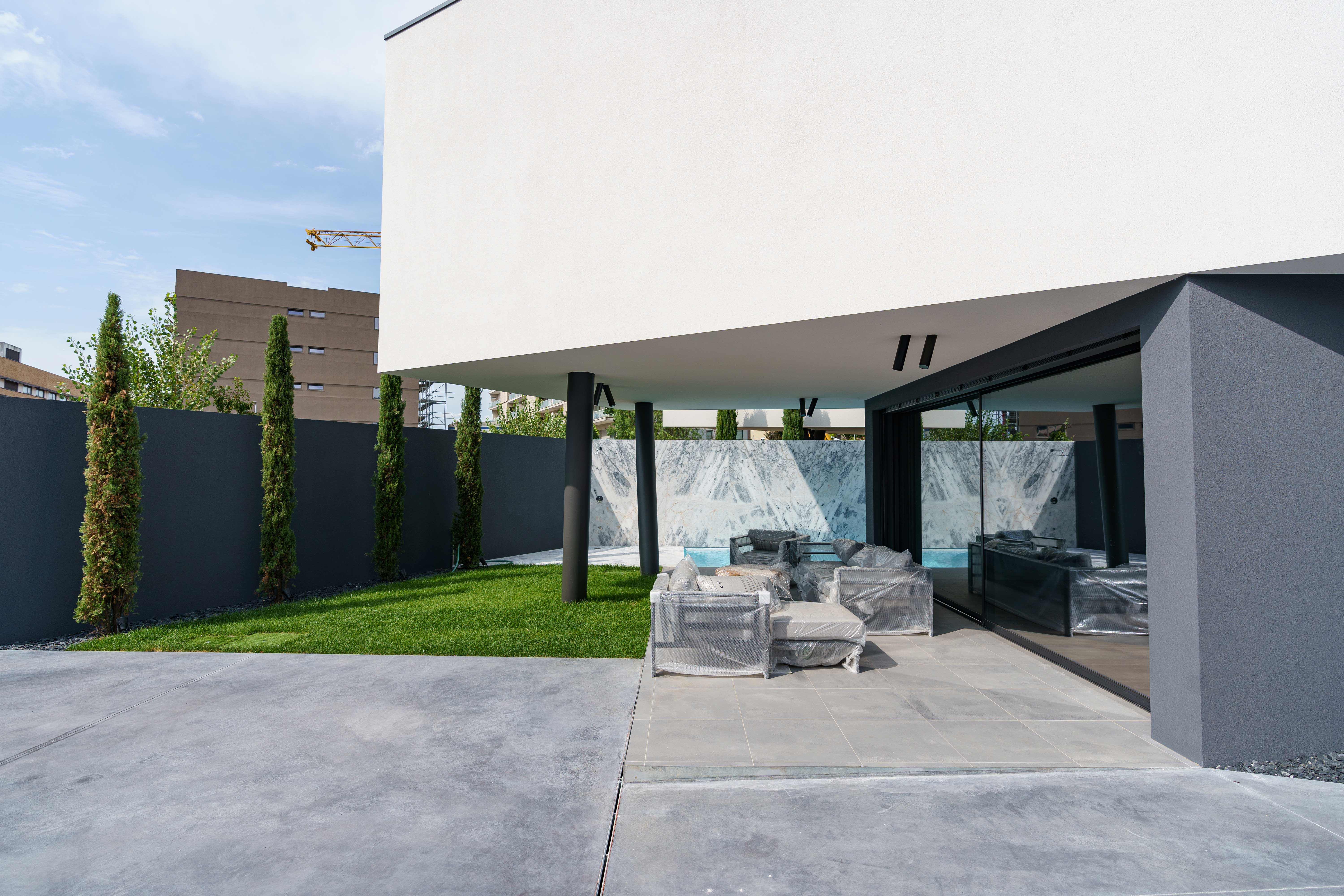 Tendo como objetivo principal a construção de uma habitação simples, funcional e confortável, procurou-se formas e processos simples, valorização da luz natural, acabamentos práticos e simples. O funcionamento é bastante intuitivo e versátil, apresenta uma distribuição por usos, os compartimentos são agrupados tendo em conta o seu uso, a relação com o exterior no que respeita aos compartimentos de descanso e lazer é bastante valorizada, abrindo-se de forma premeditada, convidando as pessoas a sair e aproveitar a continuidade do espaço como complemento do interior, sempre com privacidade. O acesso automóvel e pedonal são efetuados diretamente a partir da rua existente, sendo as entradas para o automóvel nas laterais, seguidas de rampas a ligar às garagens no fundo do terreno. O piso inferior é dedicado às dependências de lazer e serviços e o piso superior para as dependências reservadas ao descanso.