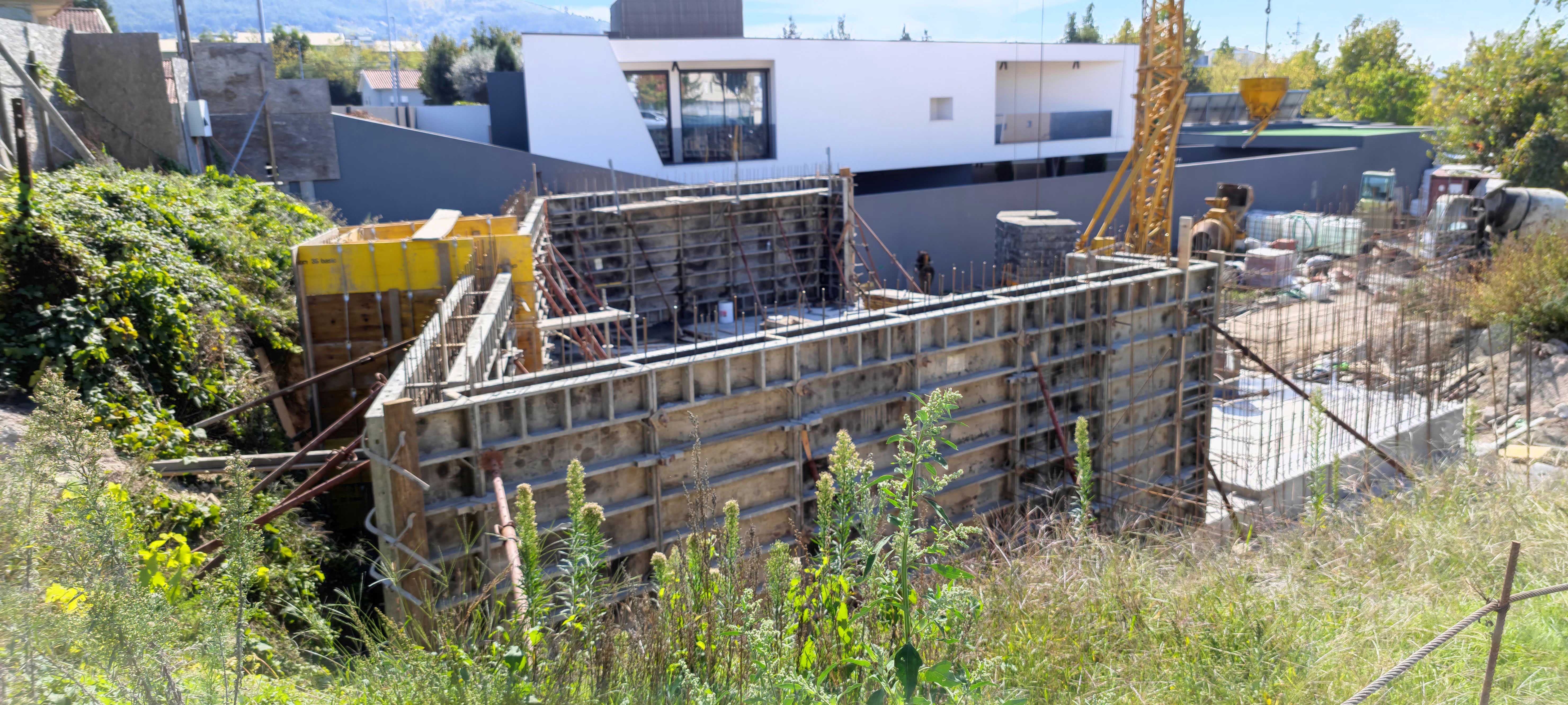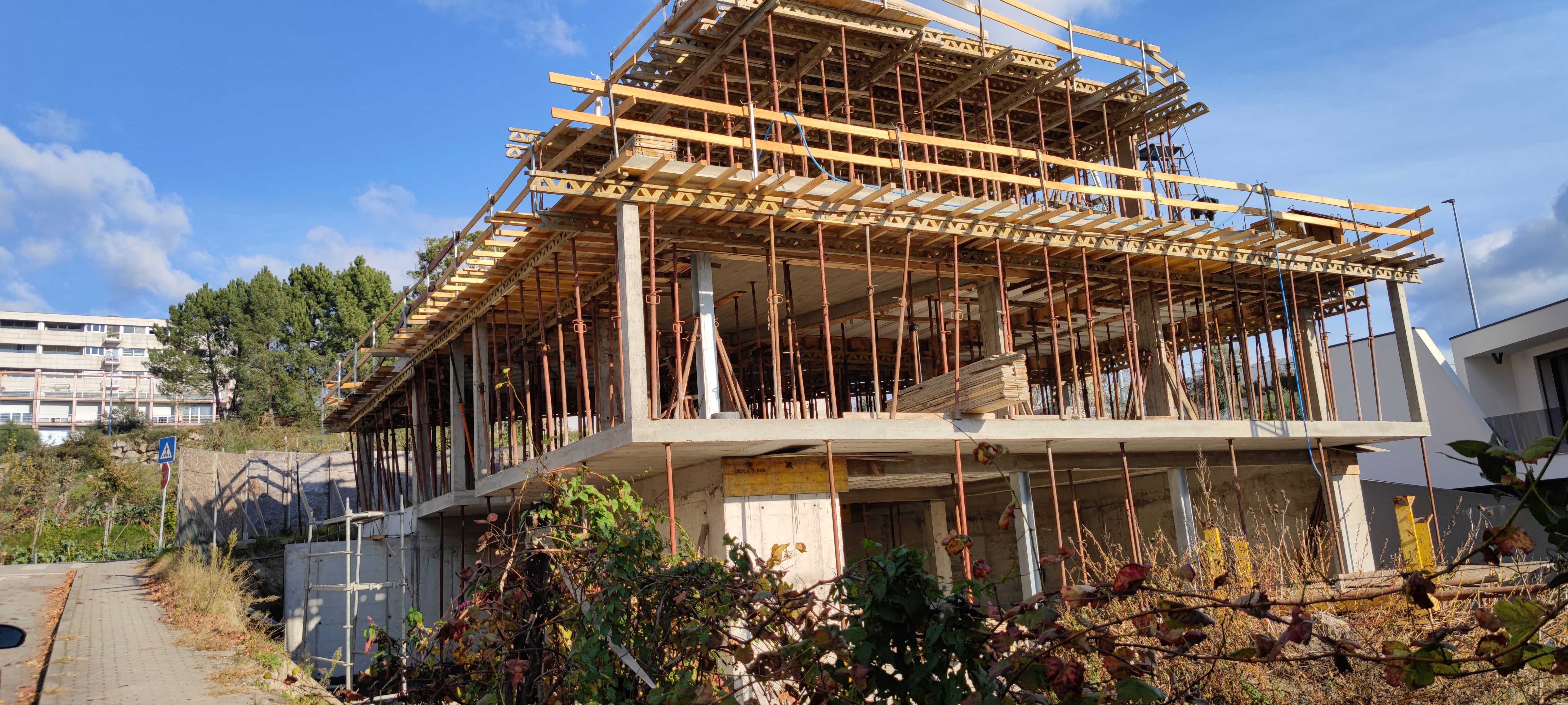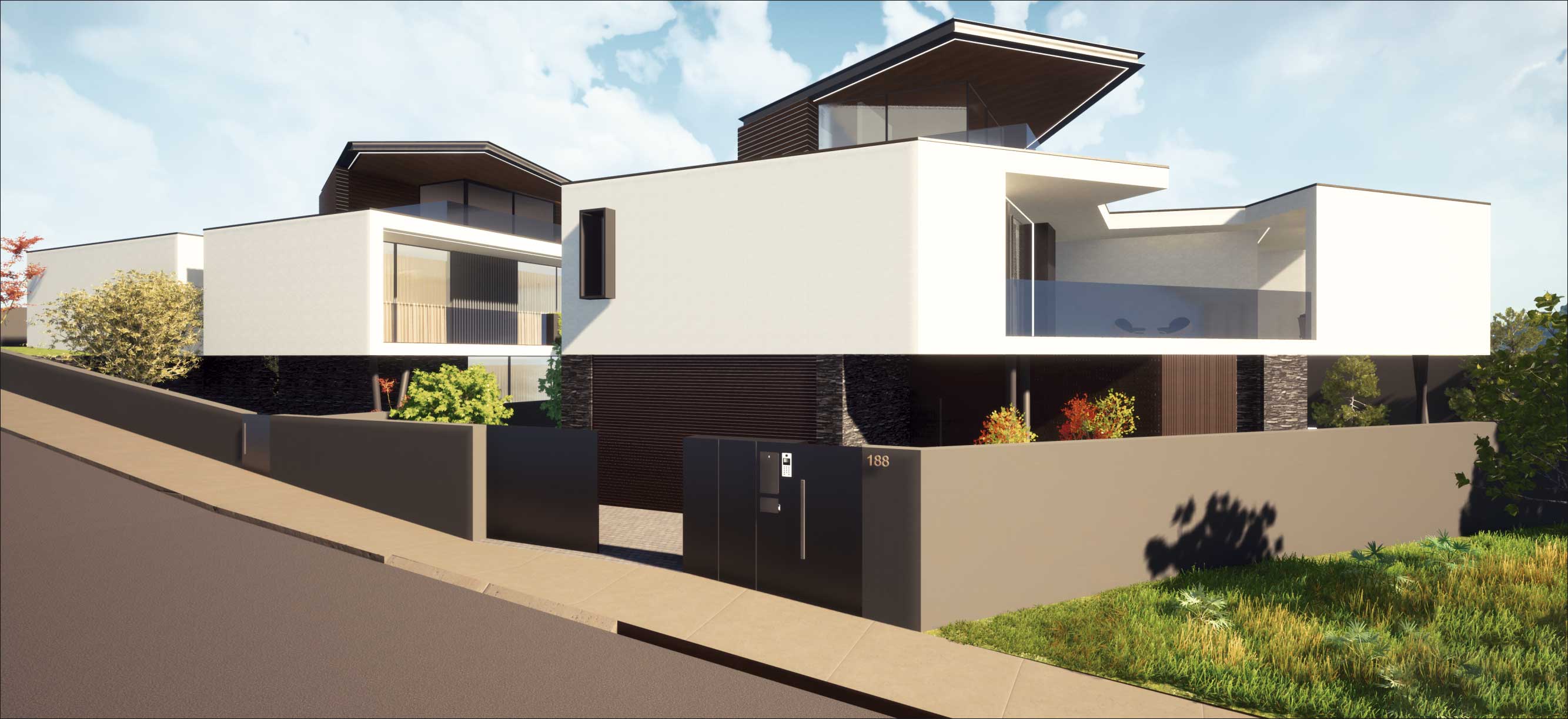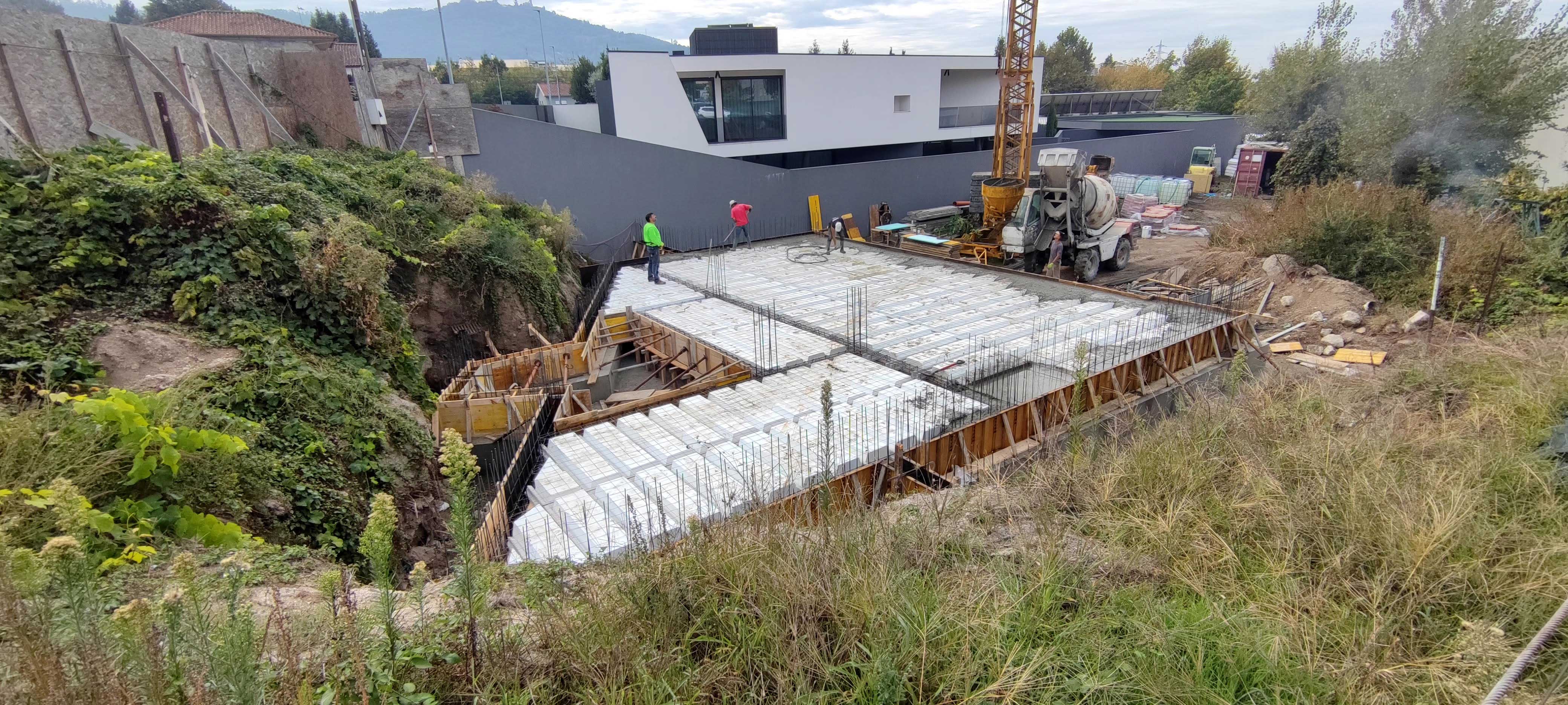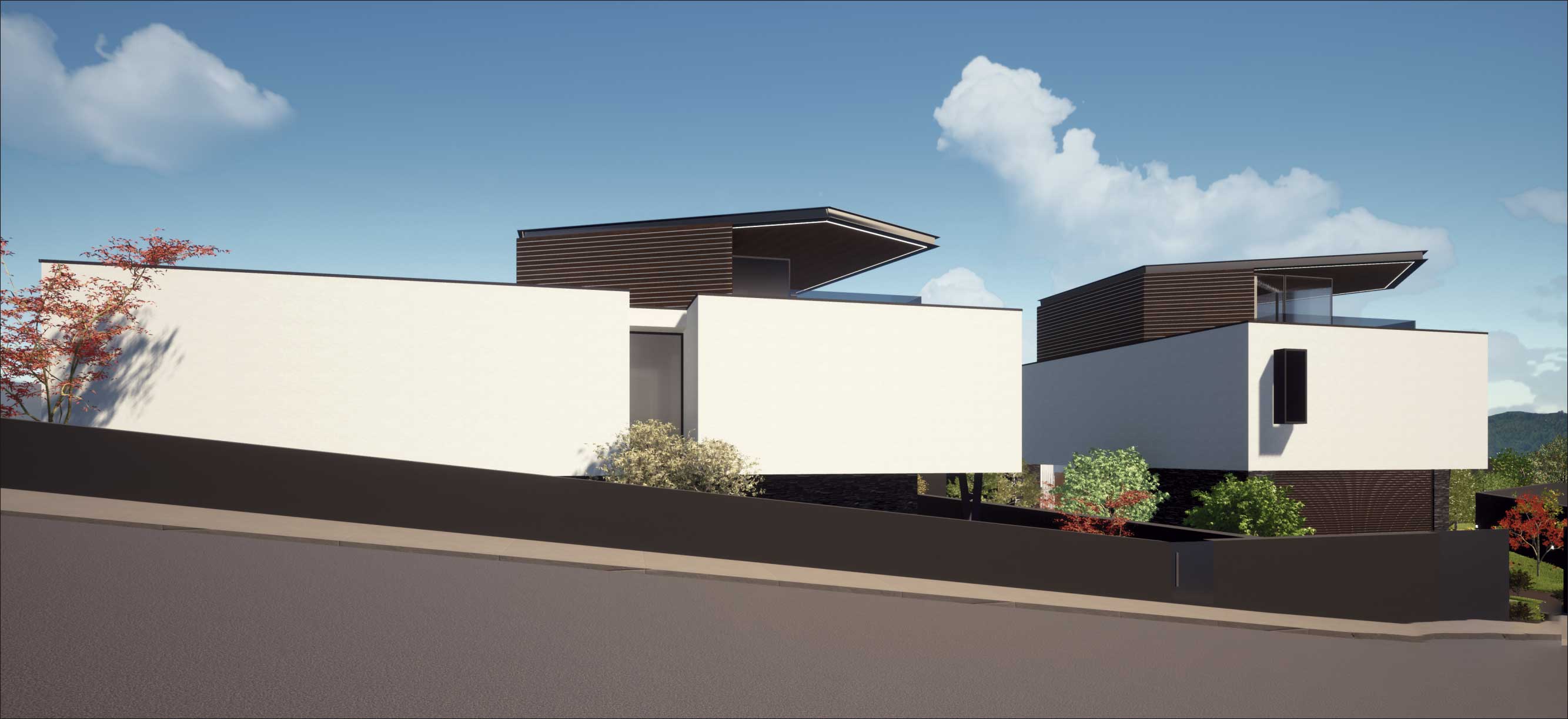O projecto visa a construção de uma moradia unifamiliar tipo T3, constituída por três níveis, cave+piso 0+piso 1 e piscina. Propomos um edifício que assenta na cota mais baixa do terreno, ficando o piso 0 sensivelmente à cota da rua e o piso 1 acima deste. Os programas e as distribuições funcionais apresentam-se agrupados por usos e de caráter introvertido. Em busca da melhor solução e como resposta a esta introversão e privacidade, a moradia fecha-se praticamente a Norte, Nascente (“virando as costas” à rua) e Poente, abrindo-se doseadamente para Sul, com o propósito de garantir privacidade com a vizinhança. A implantação resulta da geometria do lote, da legislação, dos afastamentos e alinhamentos com a envolvente, bem como da procura de um certo anonimato. A imagem apresenta-se como uma sobreposição de volumes constituídos pelos pisos, aos quais associamos funções, serviços, lazer e descanso.