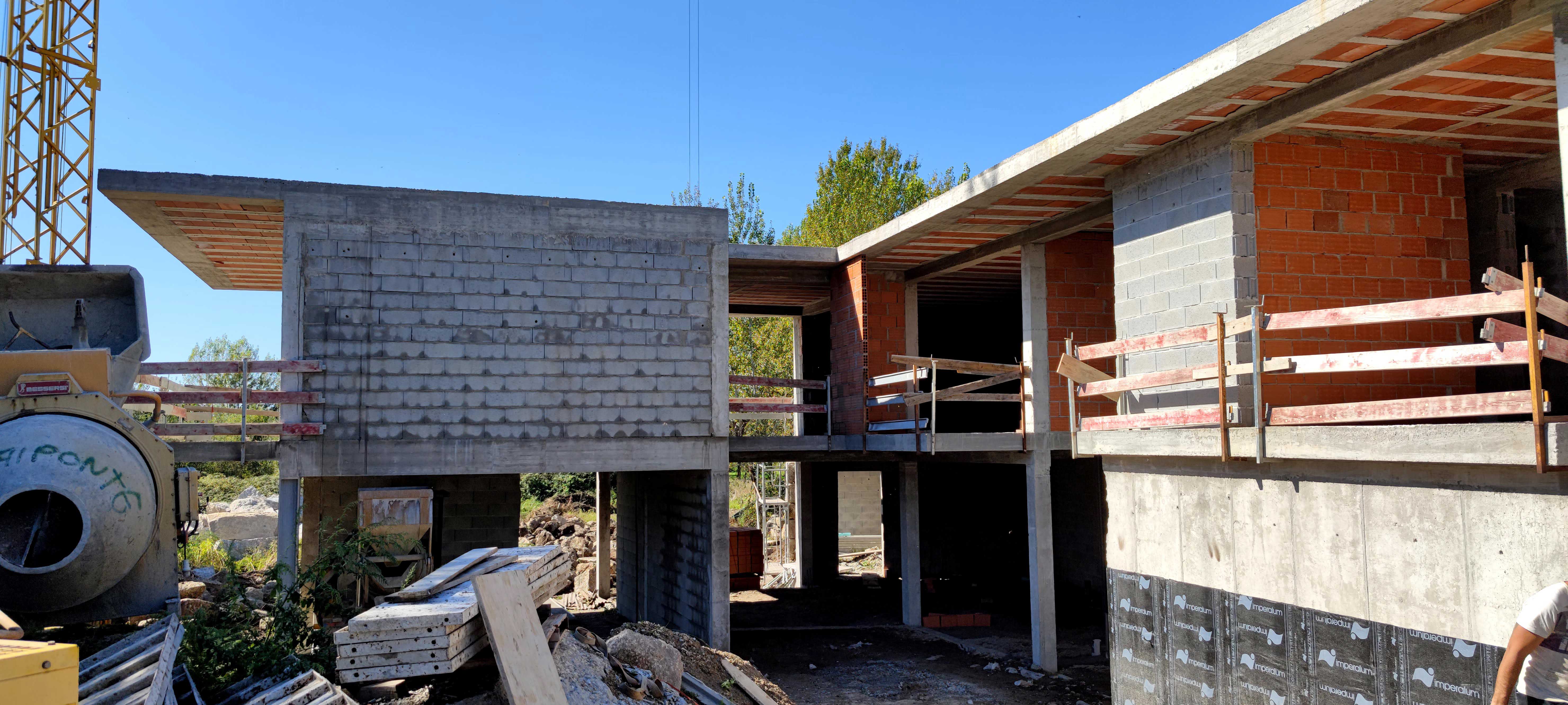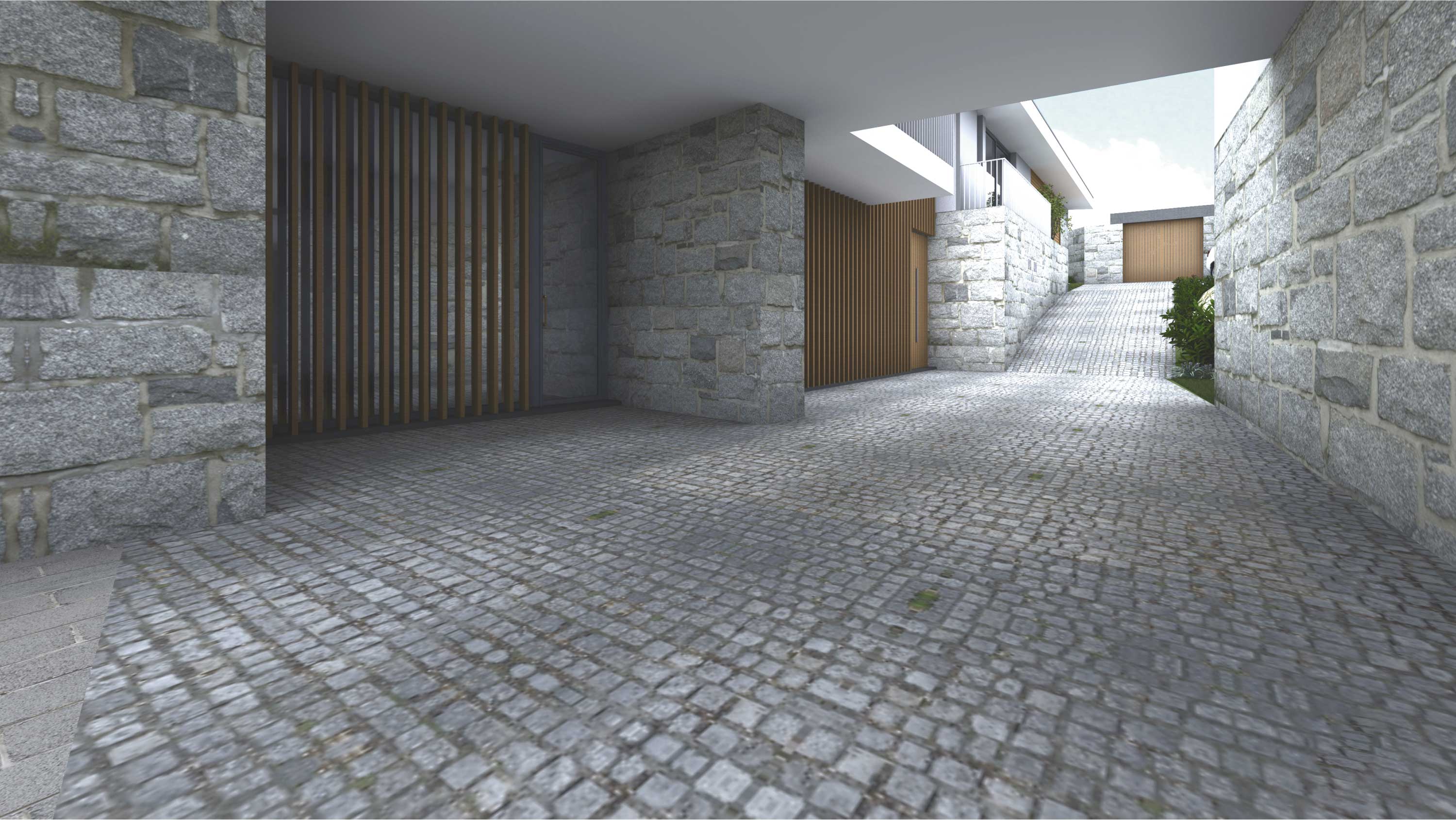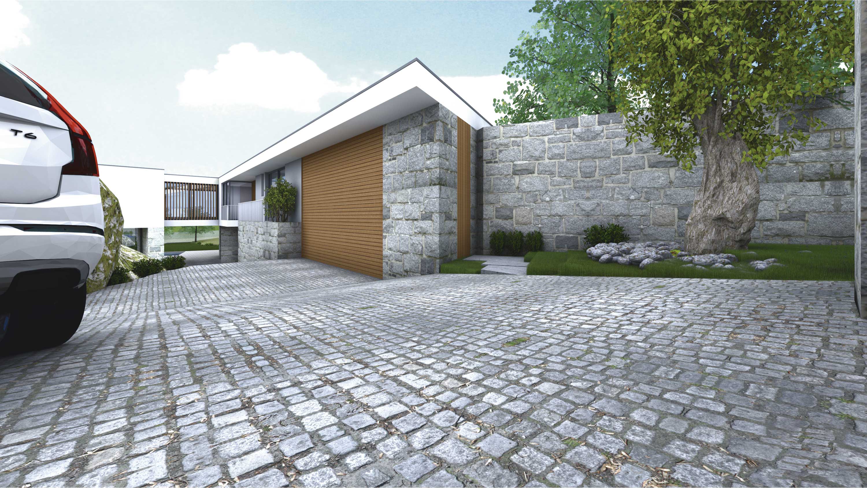 O projecto procura articular a nova construção com edificado existente e integrar o conjunto com a paisagem natural envolvente. O projecto visa a construção de uma moradia unifamiliar de r/c e andar, que se estende pelo terreno e onde pontualmente são criados motivos que rompem a implantação/construção. Por motivos de funcionalidade, privacidade e térmico, a moradia fecha-se praticamente a Norte, abrindo-se mais acentuadamente para os outros quadrantes. No que respeita ao espaço exterior, a proposta mantem traçados e orientações do existente embora seja necessário proceder a uns ajustes de modo a cumprir o programa pretendido, bem como gerar o espaço necessário para incluir os estacionamentos no interior do terreno. Assim, propomos eliminar ou reduzir o volume de alguns de modo a libertar espaço para estacionamento e circulações.