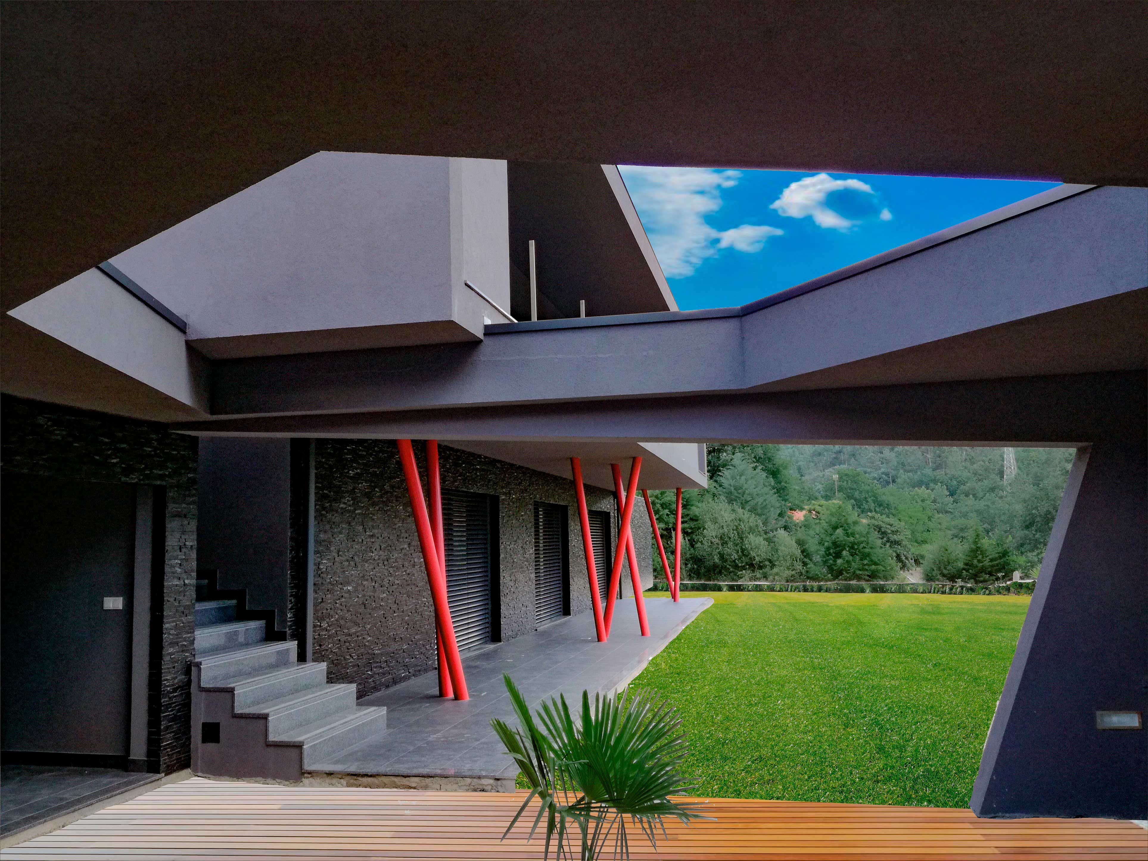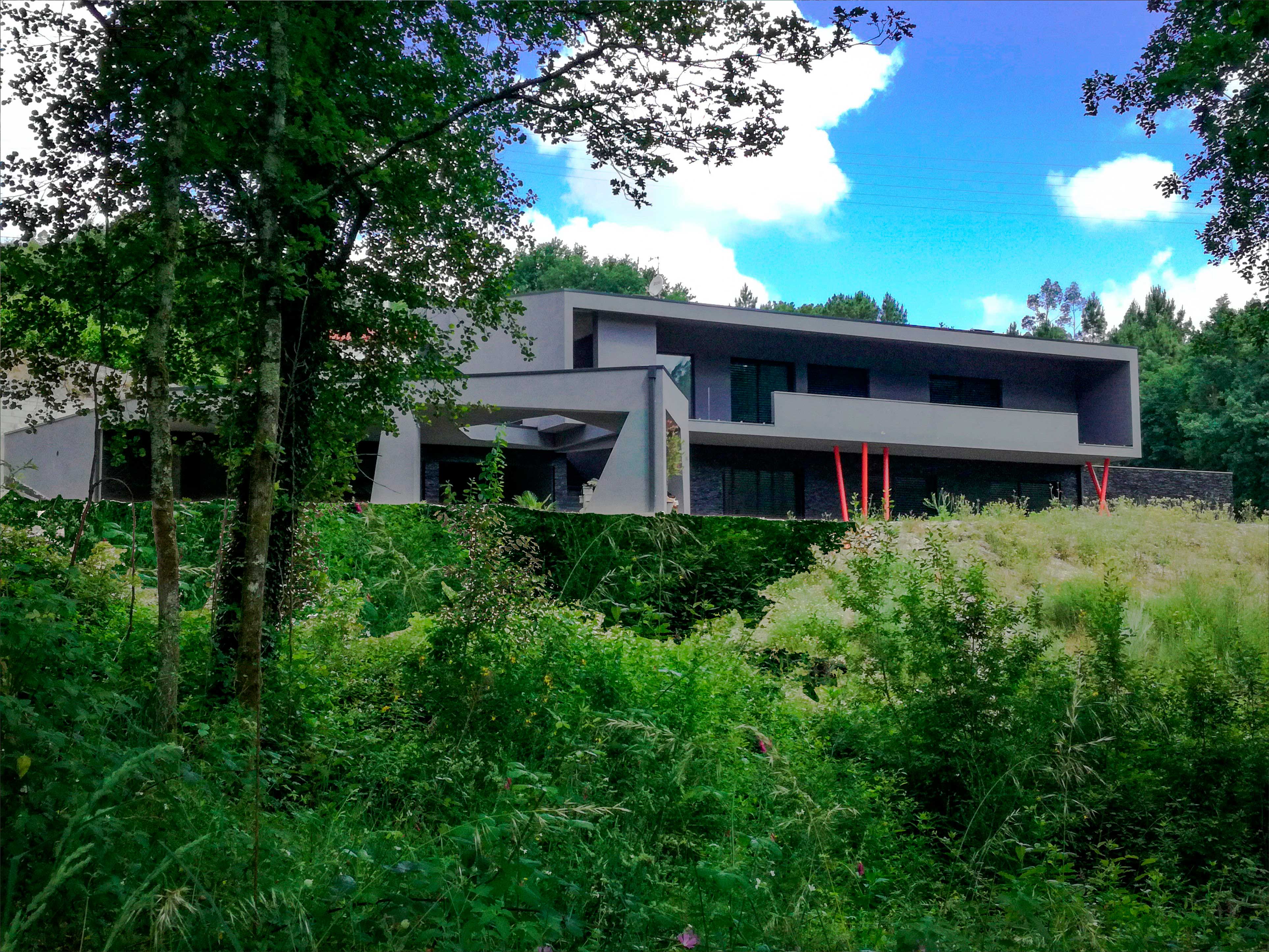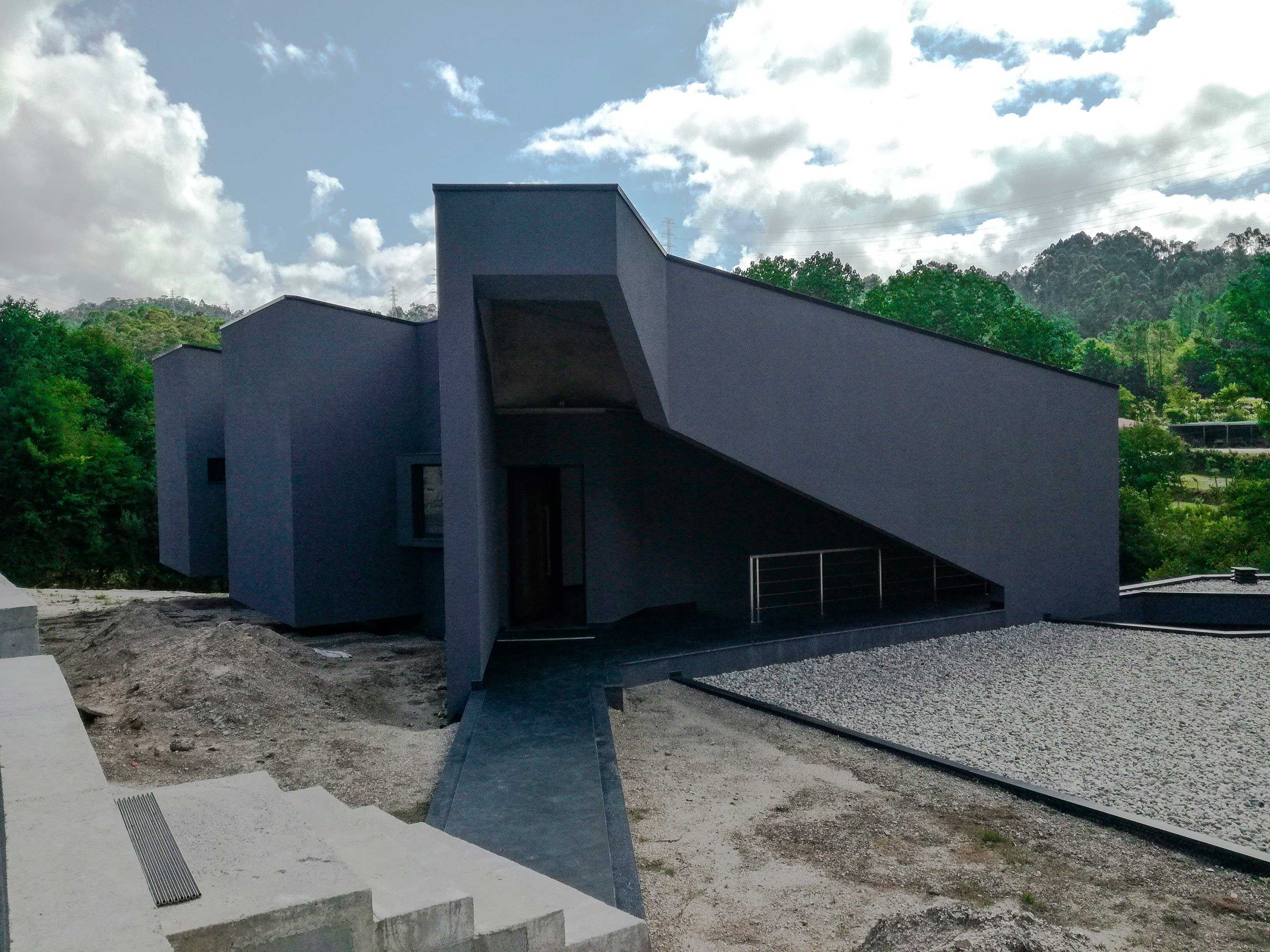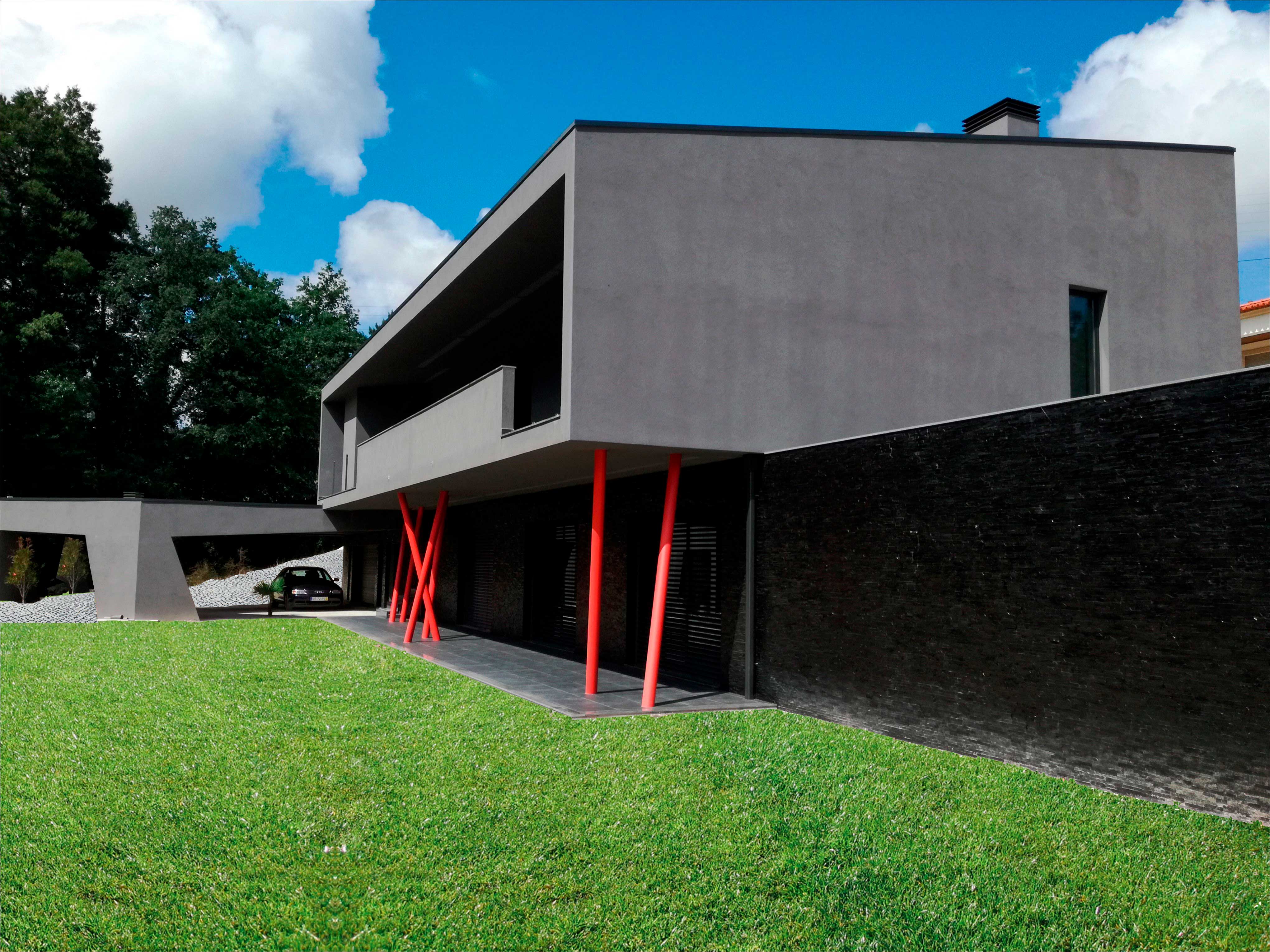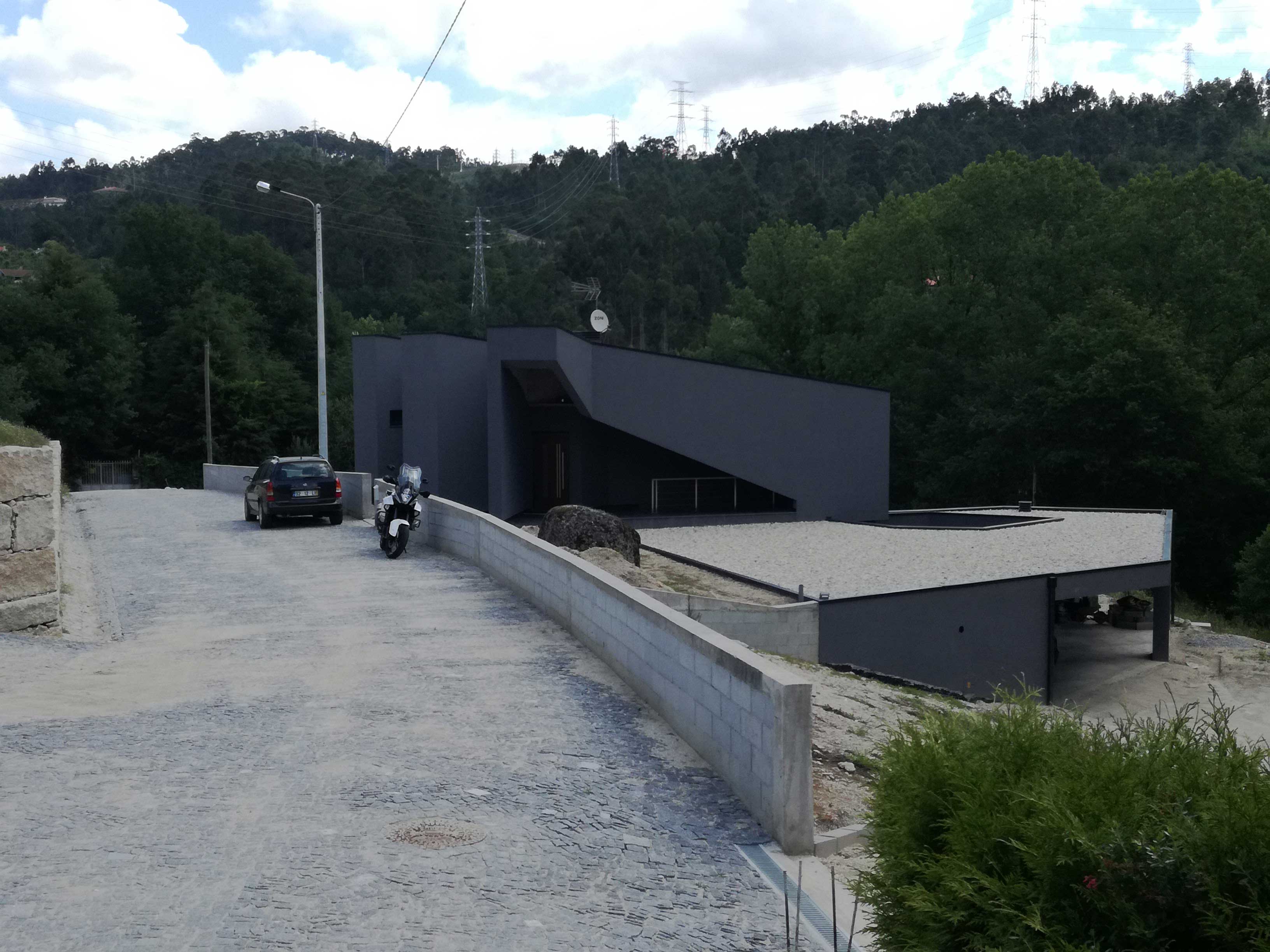 Como em todas as situações, em cada projeto o arquitecto interpreta o lugar e as suas regras. Faz-se leituras do lugar, captasse sinais, pontos de vista, referências e âncoras que ajudassem a estruturar a intervenção, criando condições únicas para que a arquitetura pertencesse àquele lugar. O edifício é composto por dois níveis que correspondem a ocupações/usos distintas (diurna e noturna) e por um volume que surge como um prolongamento do piso inferior para a lateral dedicado ao aparcamento coberto e garagem. Dada a topografia do terreno, foi necessário criar uma plataforma de nível onde nasce o piso 0, seguido da sobreposição do piso superior sensivelmente à cota da rua que balanceia sobre o inferior. A plasticidade e a busca da escultura habitada, ora opaca ora transparente, recorrendo a rasgos que lhe conferem privacidade e, quando necessário reforçam a relação com a envolvente.