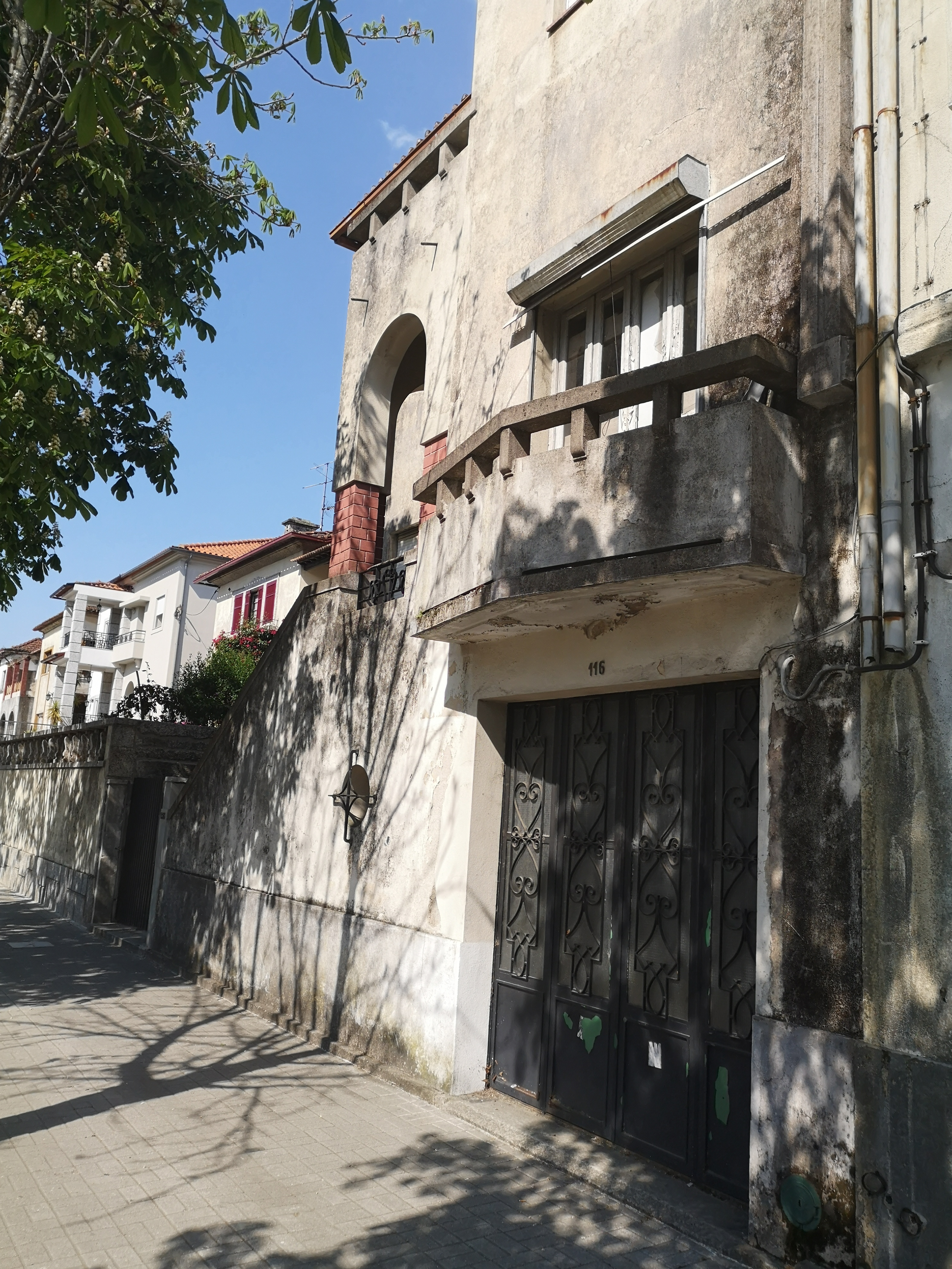 O edifício localiza-se no Centro Histórico de Guimarães, Património Mundial pela UNESCO. O edifício principal integra uma faixa construída ao longo da rua, sendo este composto pelo r/c mais dois pisos e águas furtadas (sótão). O logradouro fica implantado sensivelmente à cota do piso 1, assim como o edifício/armazém localizado no limite posterior do terreno. Aparentemente o edifício já foi intervencionado e ampliado, pois verificamos uma mistura de sistemas construtivos. Verificamos uma mistura de métodos construtivos, construção tradicional com construção com paredes interiores em tabique e lajes em estrutura de madeira revestida com soalho e zonas com vigas, e construção com pilares e lajes em betão armado, bem como paredes interiores em tijolo ou bloco de cimento.