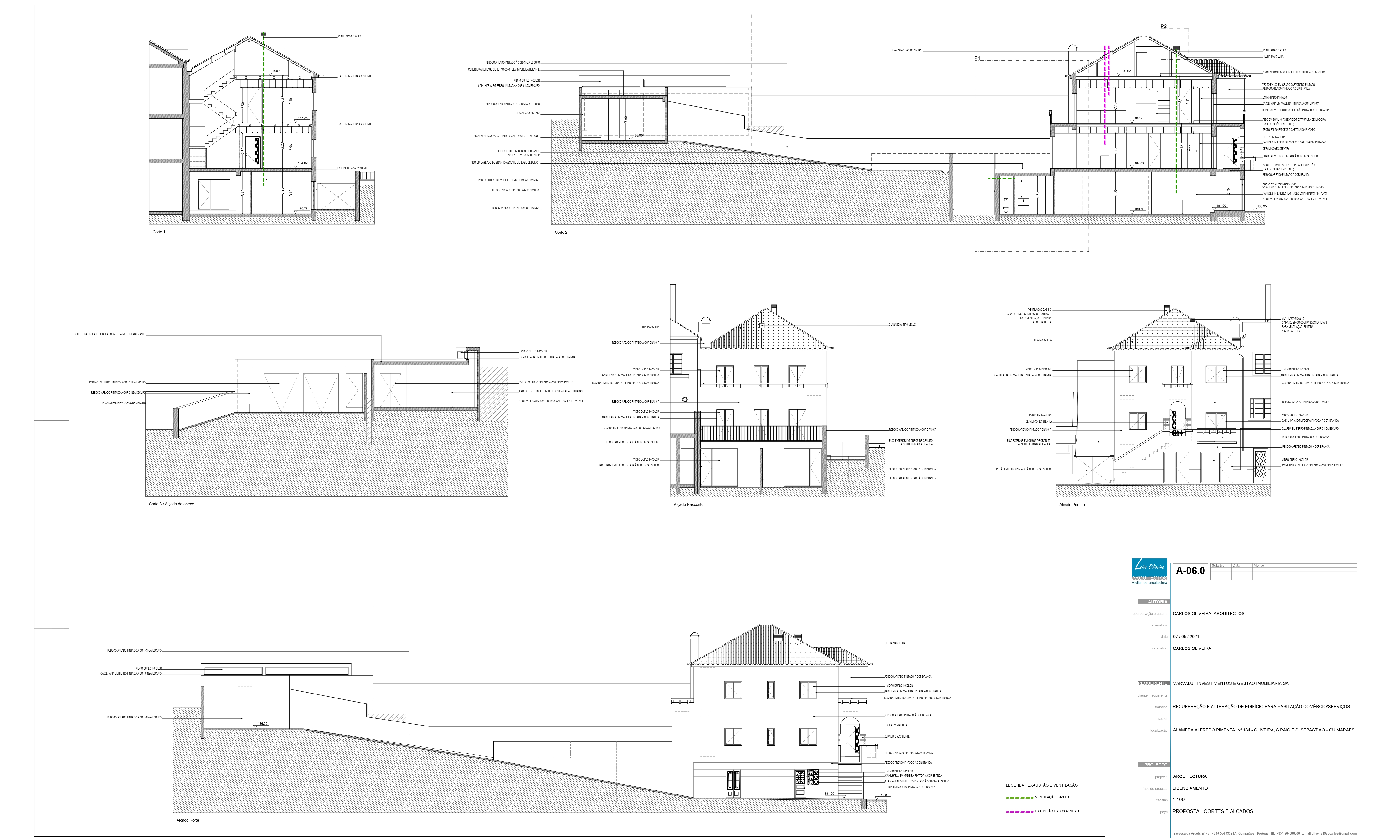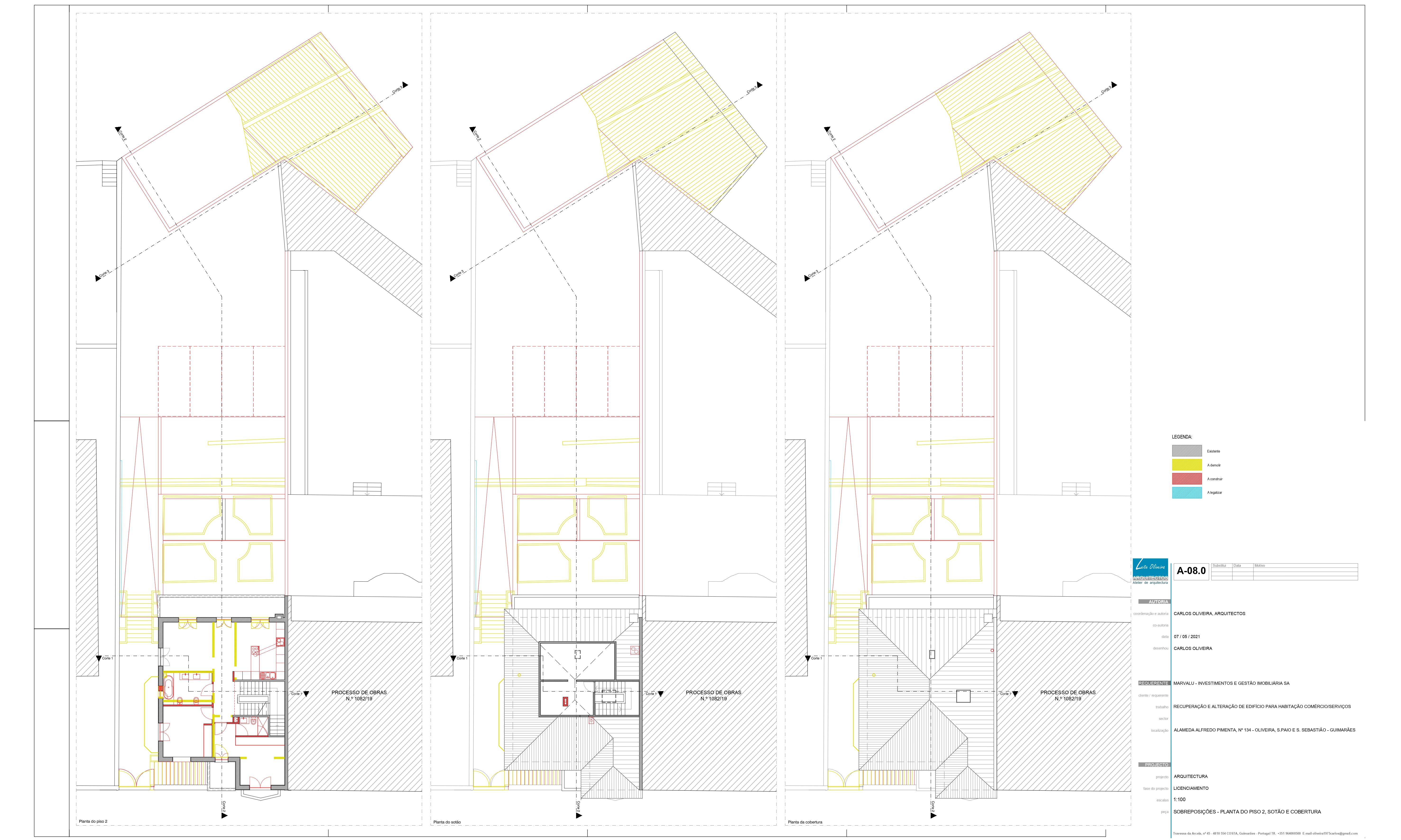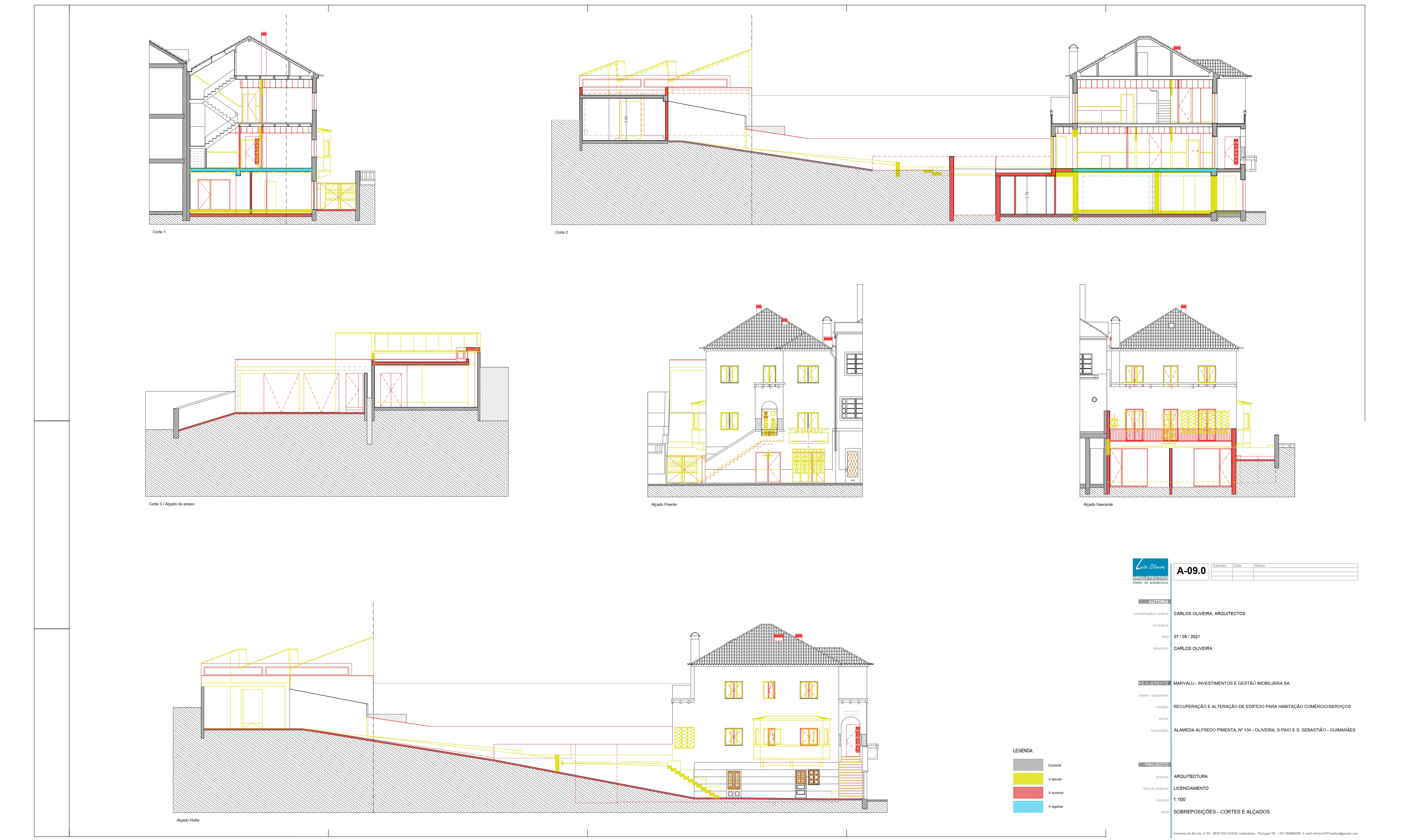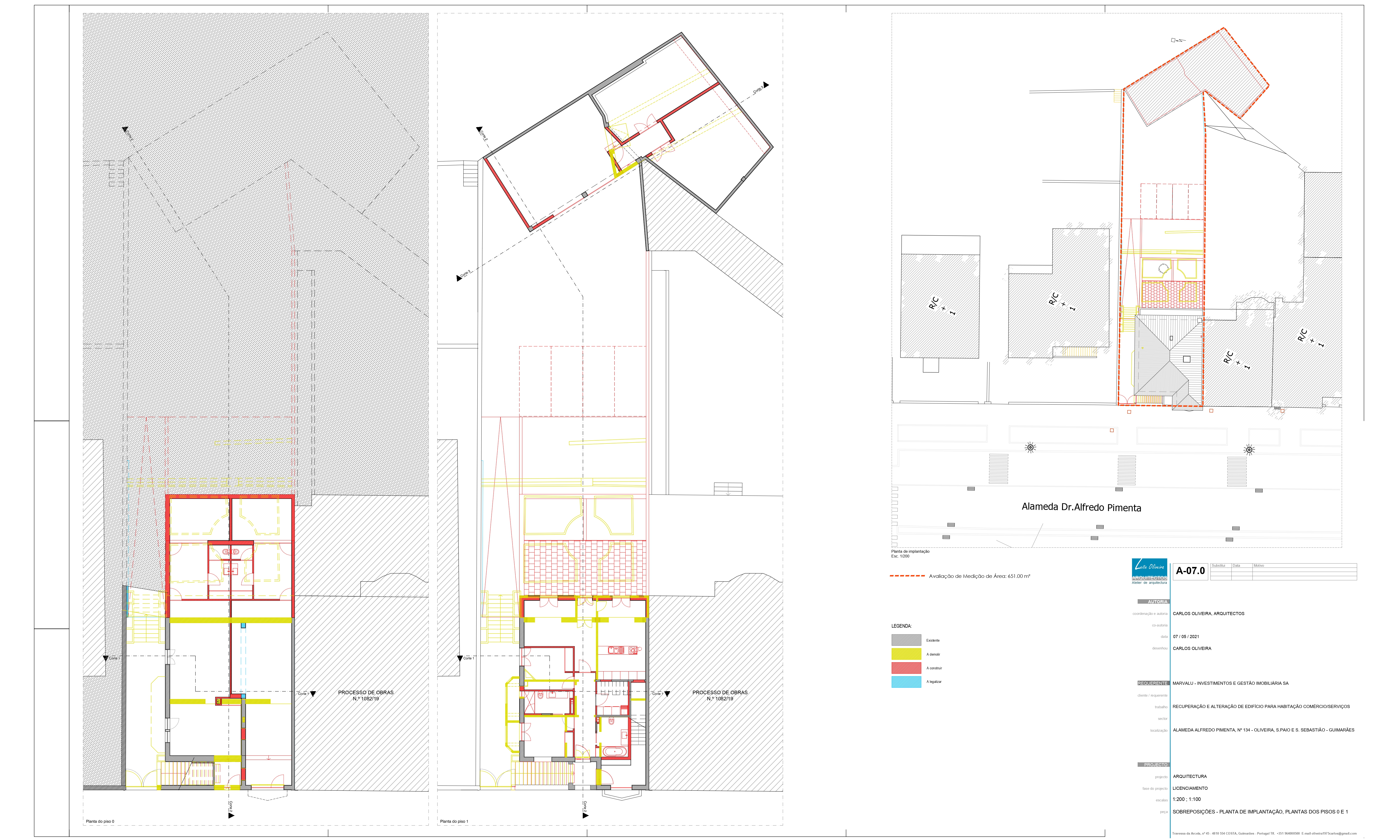 O projecto visa a conversão de um edifício de habitação composto pelo r/c mais dois pisos e águas furtadas em duas unidades de ocupação destinadas a comércio/serviços no r/c e duas unidades de ocupação destinadas a habitação nos pisos 1 e 2. Propomos ainda tirar partido da cota do logradouro que fica sensivelmente à cota de soleira do piso 1 para fazer a ampliação da cave, recorrendo a um desaterro de modo a “encaixar” no terreno a referida ampliação. Pretendemos que a intervenção, seja o mais discreta possível. Propomos manter o maior número de elementos marcantes do existente ao nível das fachadas, sem descaracterizar o edifício, de modo a que mais tarde seja possível uma reconversão para habitação.