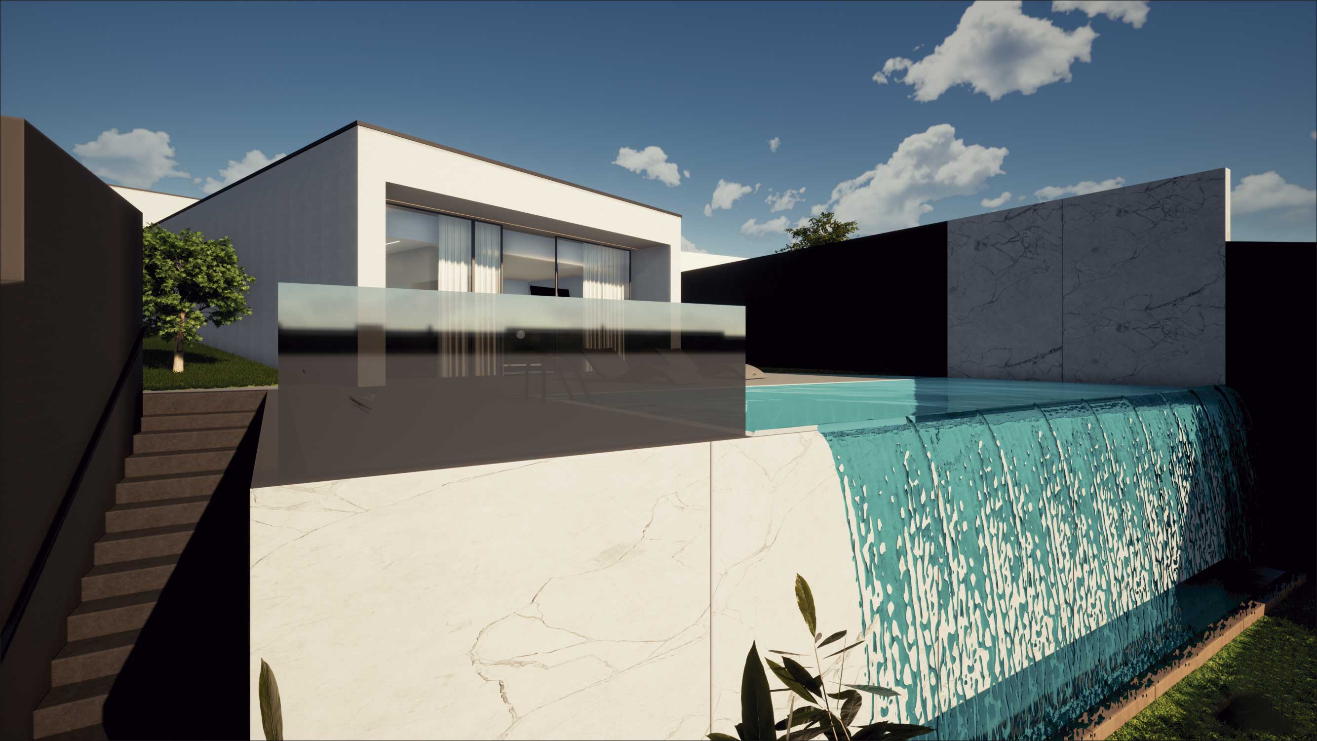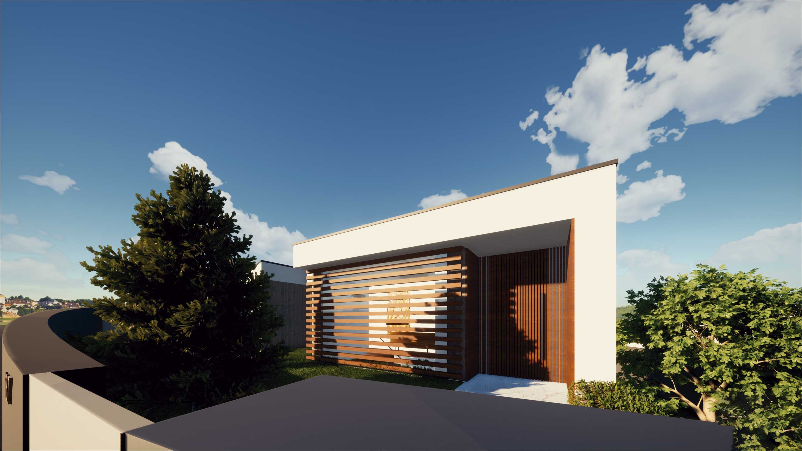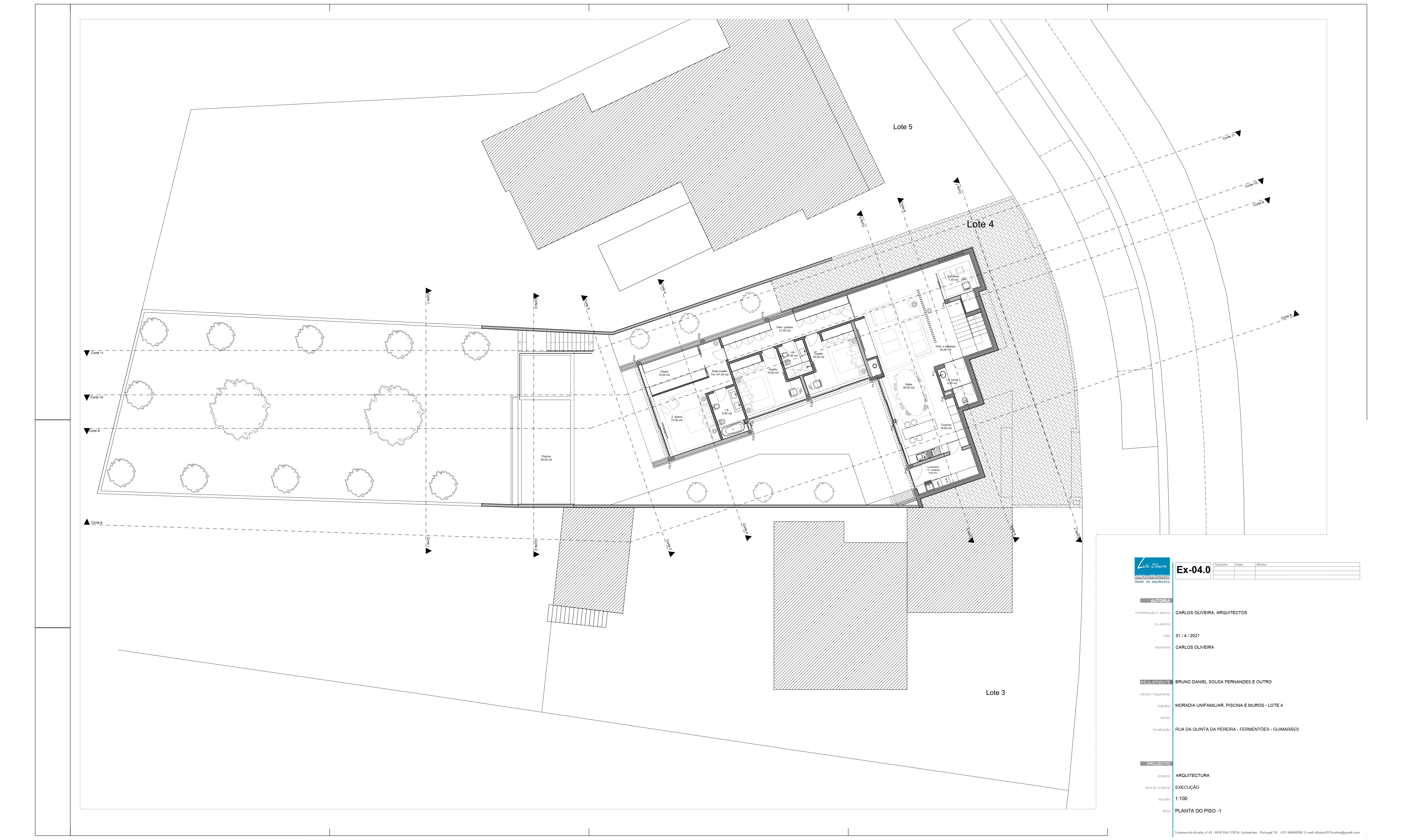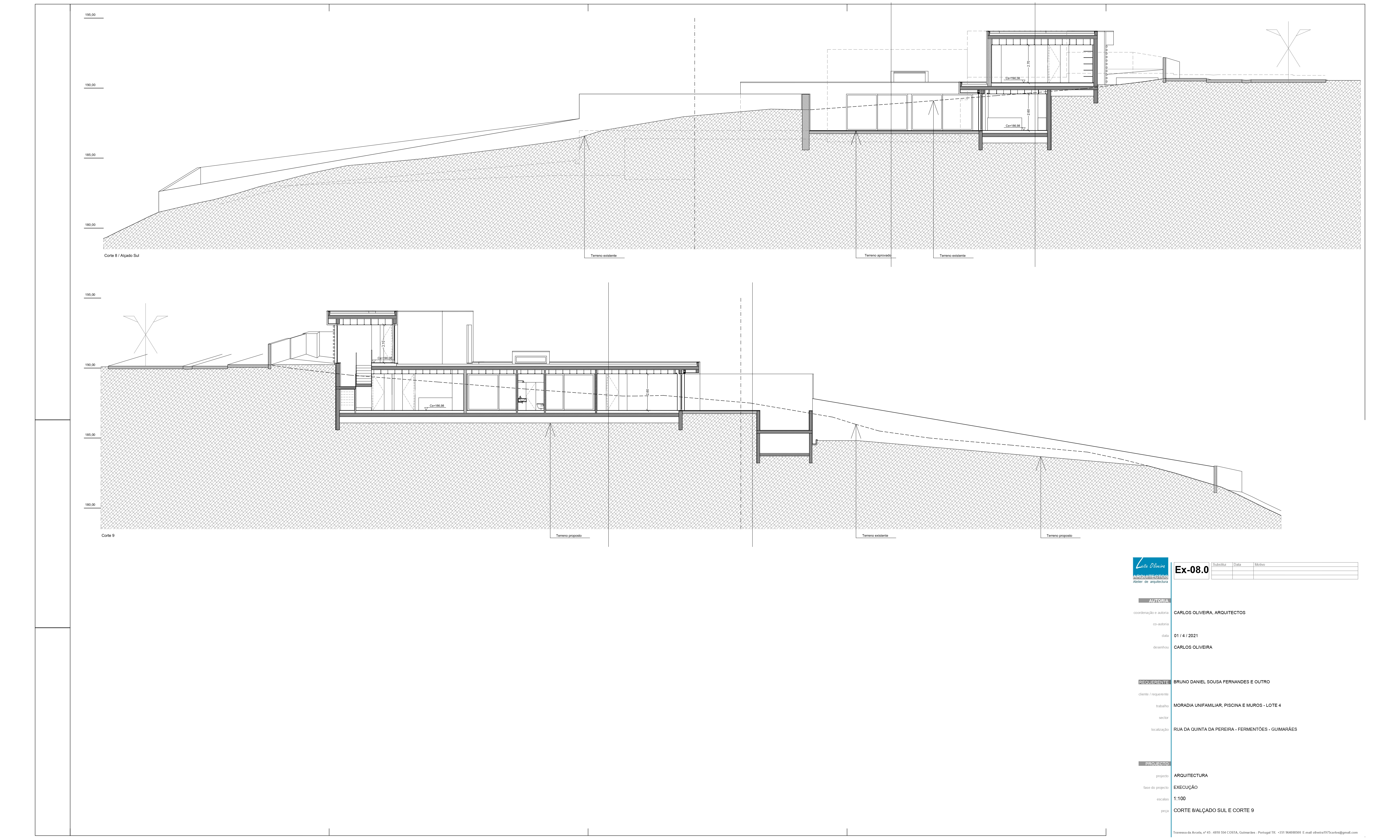A proposta visa a construção de uma habitação tipo T3, constituída por dois níveis, bem como uma piscina, anexo e muros de vedação. Pretende-se uma moradia contemporânea, funcional, esteticamente apelativa e que vá ao encontro das novas exigências e modos habitar. A implantação resulta da geometria do lote, da legislação, dos afastamentos e alinhamentos com a envolvente, bem como da procura de um certo anonimato. A imagem apresenta-se como uma sobreposição de volumes constituídos pelos pisos, aos quais associamos funções, serviços, lazer e descanso.