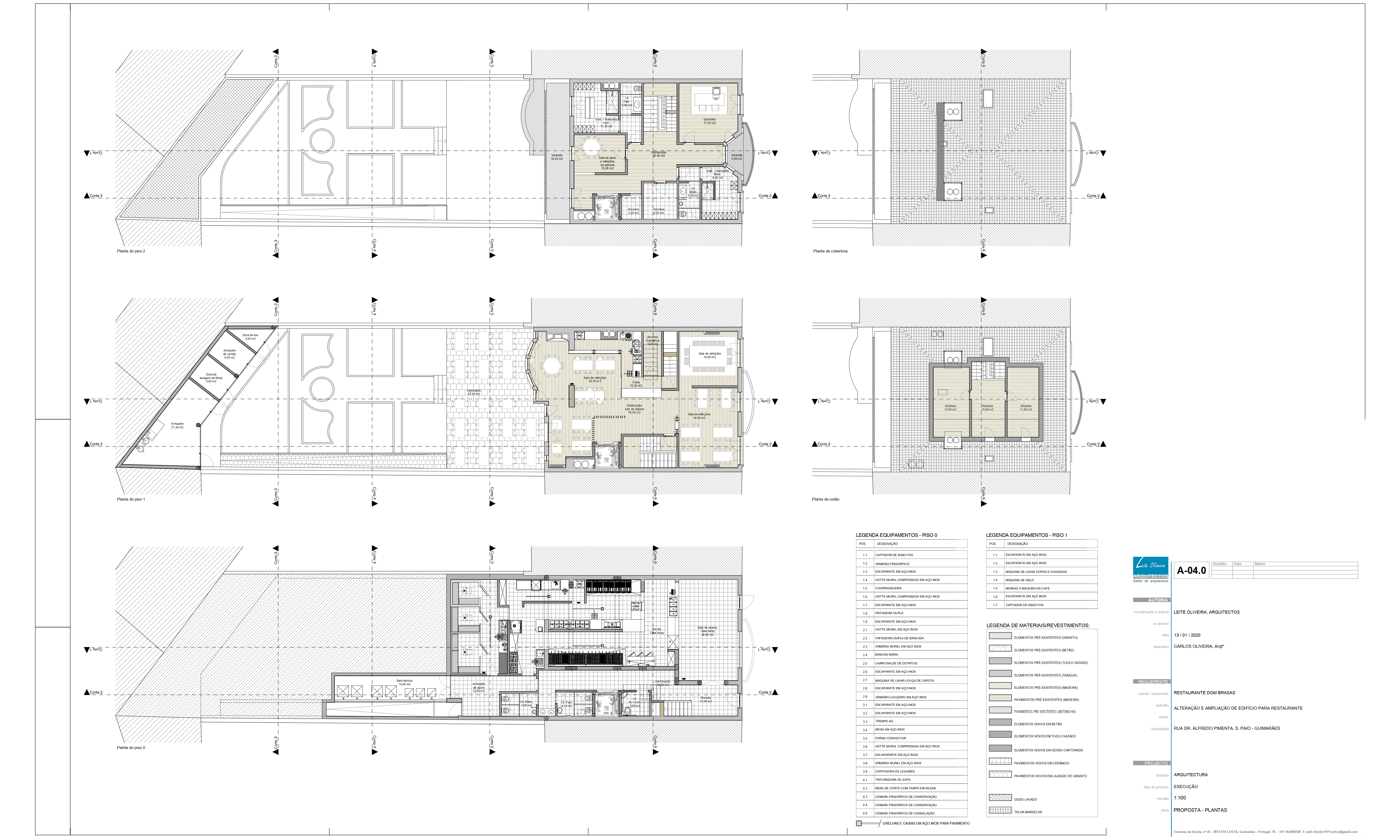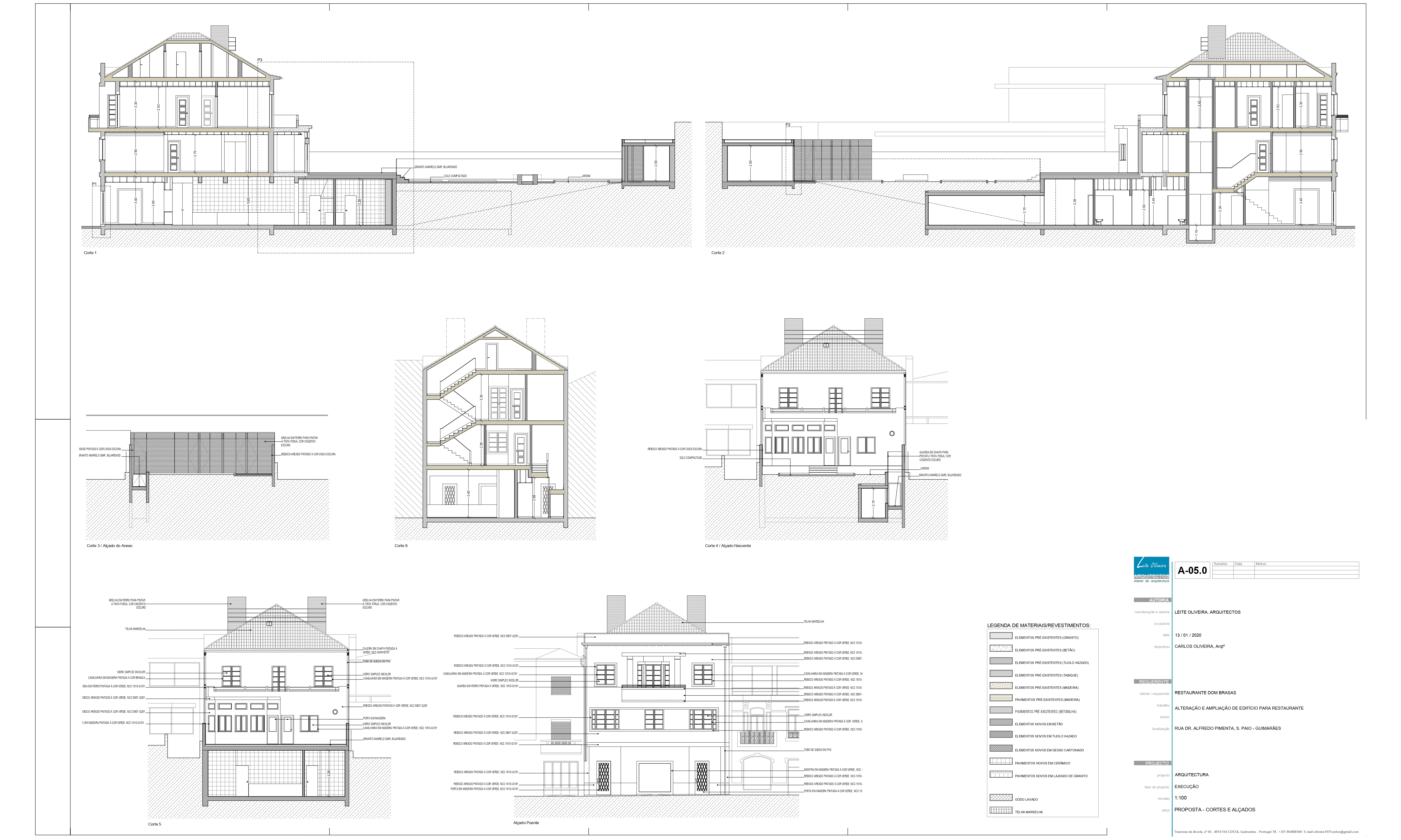É nossa intenção manter as principais características do edifício existente, embora temos a noção que para criar os espaços necessários para um bom funcionamento do restaurante poderá ser necessário fazer demolição pontual de paredes interiores e recorrer a uma estrutura de apoio que se pretende do tipo metálica e que fique escamoteada sempre que possível. Elementos marcantes como por exemplo as escadas interiores e o fogão de sala, serão para manter e recuperar. As fachadas e cobertura serão mantidas, no interior haverá a necessidade de alguns ajustes no que respeita à divisão dos espaços, será necessário eliminar algumas paredes de modo a integrar o programa pretendido. A ampliação proposta será construída em betão armado. Esta acontece ocupando parte do logradouro, fazendo um prolongamento do r/c, servindo-se da cota do logradouro de modo a ficar integrada e sem aumento visível da volumetria. Pretendemos manter as características das caixilharias existentes, recuperando-as ou aplicar novas à semelhança das existentes, sendo depois pintadas.